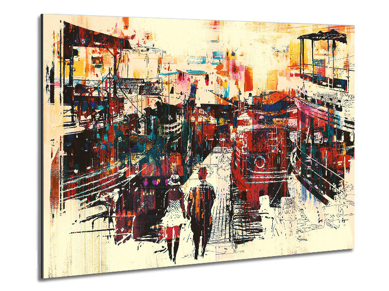Abenteuer in der Stadt Gedruckt auf gebürstetem Aluminium-Dibond. Eine moderne Art, Kunst zu präsentieren und leicht zu pflegen.