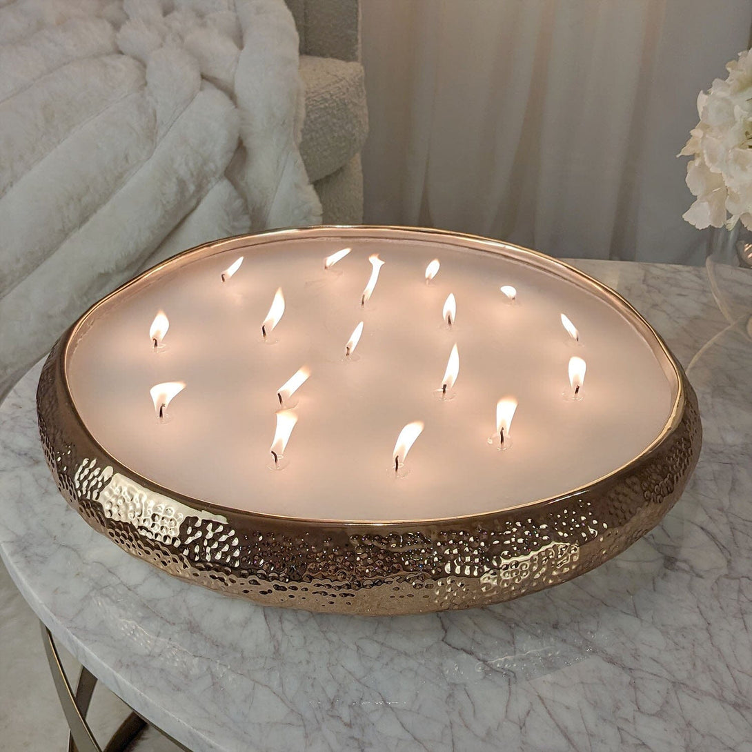 With its impressive size in a luxe bronze finish and 17 flickering wicks, this candle demands attention in any room.