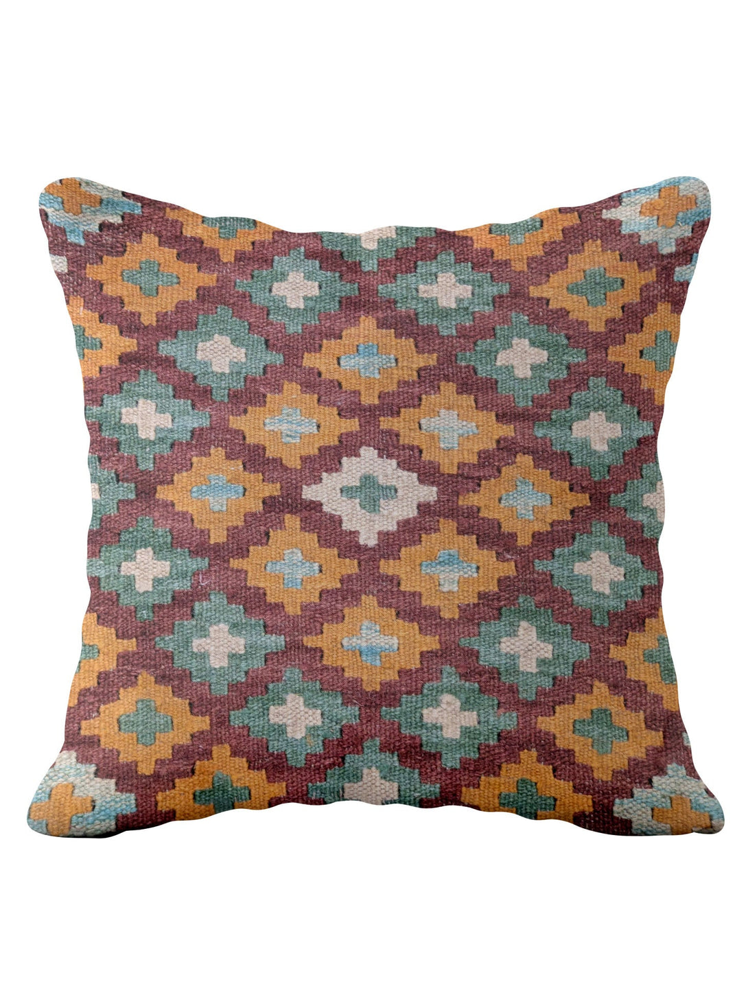 Each Afghanistan Kilim Cushion Cover is a one of a kind creation made from vintage tribal kilims. Bold geometric patterns and earthy tones bring a touch of tradition and timeless charm to any setting. Crafted from pure wool with a sturdy cotton backing, they blend rustic texture with rich cultural history. Perfect for adding warmth character and story to your home.