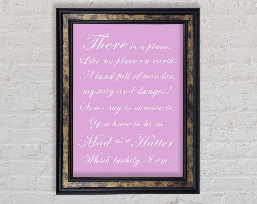 Alice In Wonderland As Mad As A Hatter Pink Framed Print