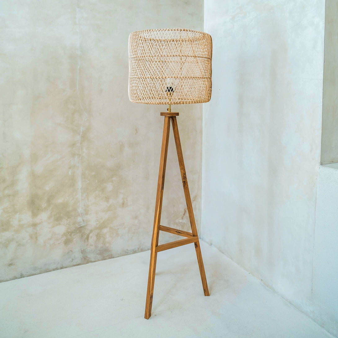 Illuminate your home with the Aluna Rattan Tripod Floor Lamp, a beautiful blend of craftsmanship and natural materials. Handcrafted in Bali by skilled local artisans, this floor lamp combines quality with simple elegance, making it a standout piece in any room. Its sturdy wooden tripod base and carefully woven rattan shade create a warm and inviting glow, perfect for enhancing the atmosphere of your living space.