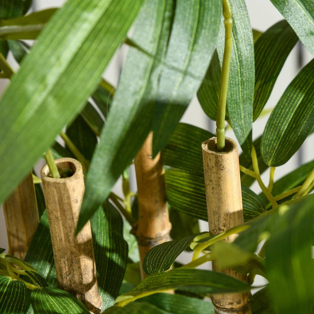 Bring natural beauty into the home without upkeep - pick this faux Bamboo plant, from Outsunny, for a breath of life this season and beyond. Made from plastic for extended lifespan, it boasts realistic colours and textures - looking like the real thing. The faux design means zero maintenance too - will keep looking the same even without any water. Finished with a cement-filled pot so it stands upright, wherever it is placed.
