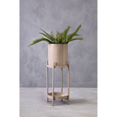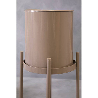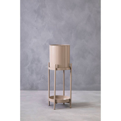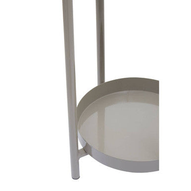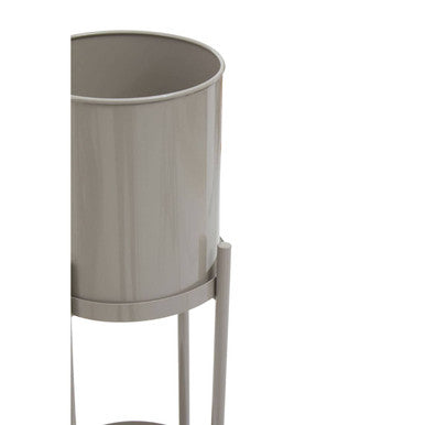 Made from durable metal in a grey powder finish, this stylish round plant stand is an ideal choice for indoor use. The frame of this planter is supported by sturdy metal legs, while a round tray with raised edges is placed at the bottom for storing and displaying other decorative items. This metal planter will add botanical dimension to a variety of abodes.