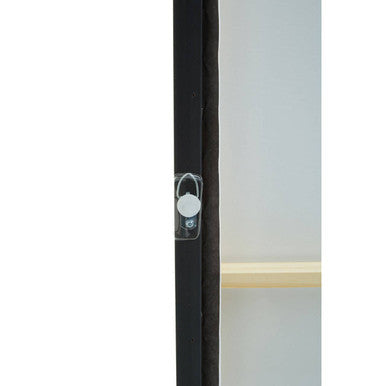 This painting showcases an abstract artwork of solar symbols. The artwork educes the imagery of sun and moon, completed with gold foil on a black background making an instant focal point. The canvas is held in a clean lined rectangular frame.