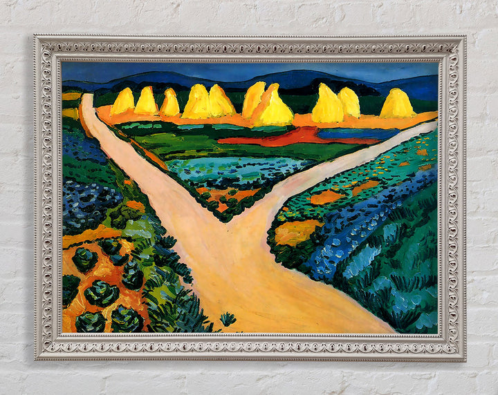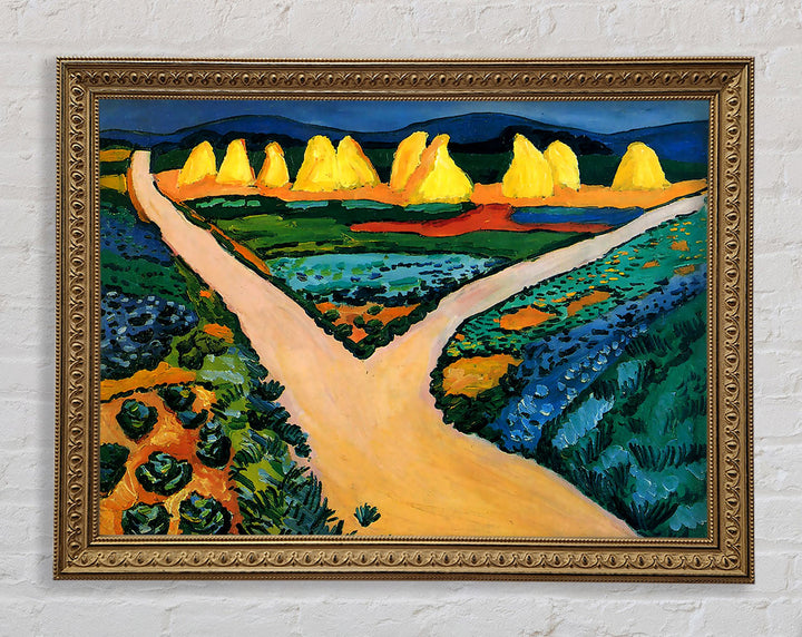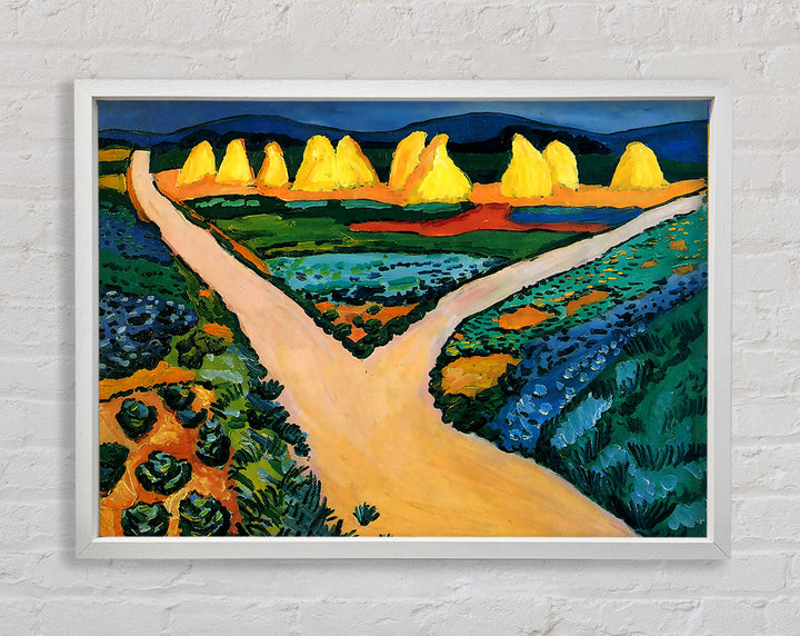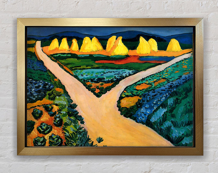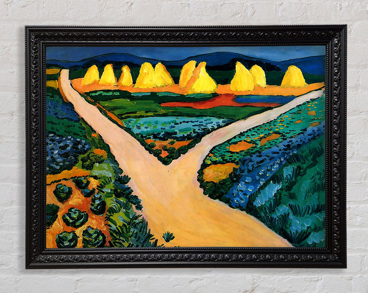Gerahmter Druck „Gemüsefelder“ von August Macke, erhältlich in mehreren Rahmenfarben. Fertig zum Aufhängen aus der Schachtel und handgefertigt im Vereinigten Königreich.