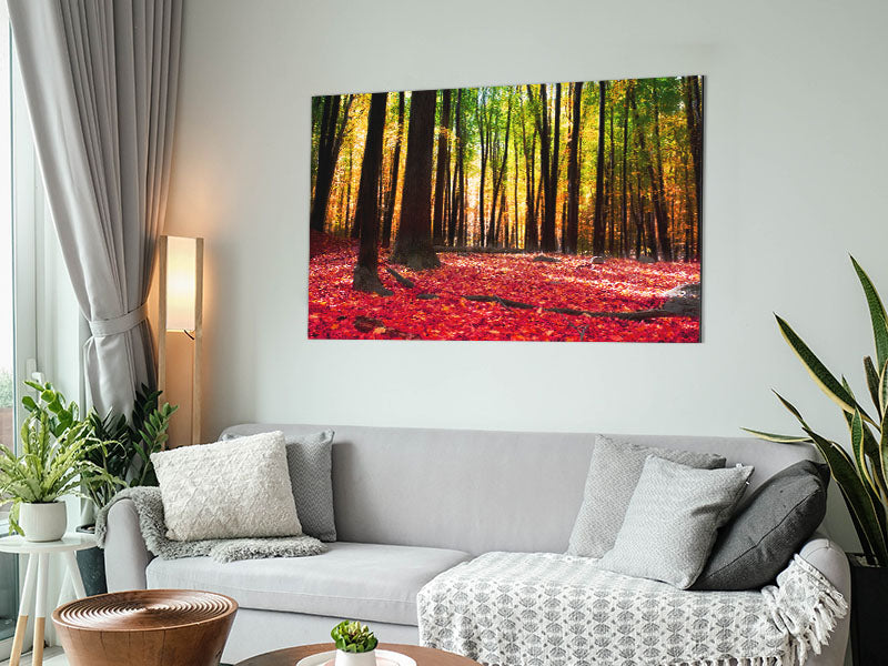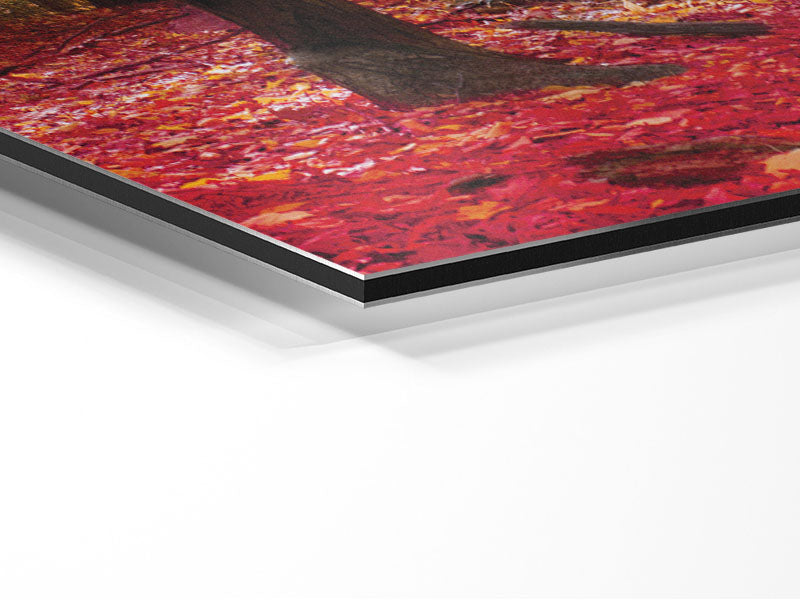 Herbstblätter auf gebürstetem Aluminium-Dibond gedruckt. Eine moderne Art, Kunst zu präsentieren und leicht zu pflegen.