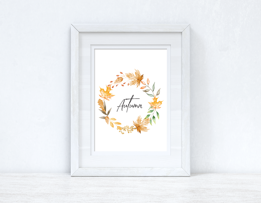 Autumn Watercolour Leaf Wreath Autumn Seasonal Wall Home Decor Print