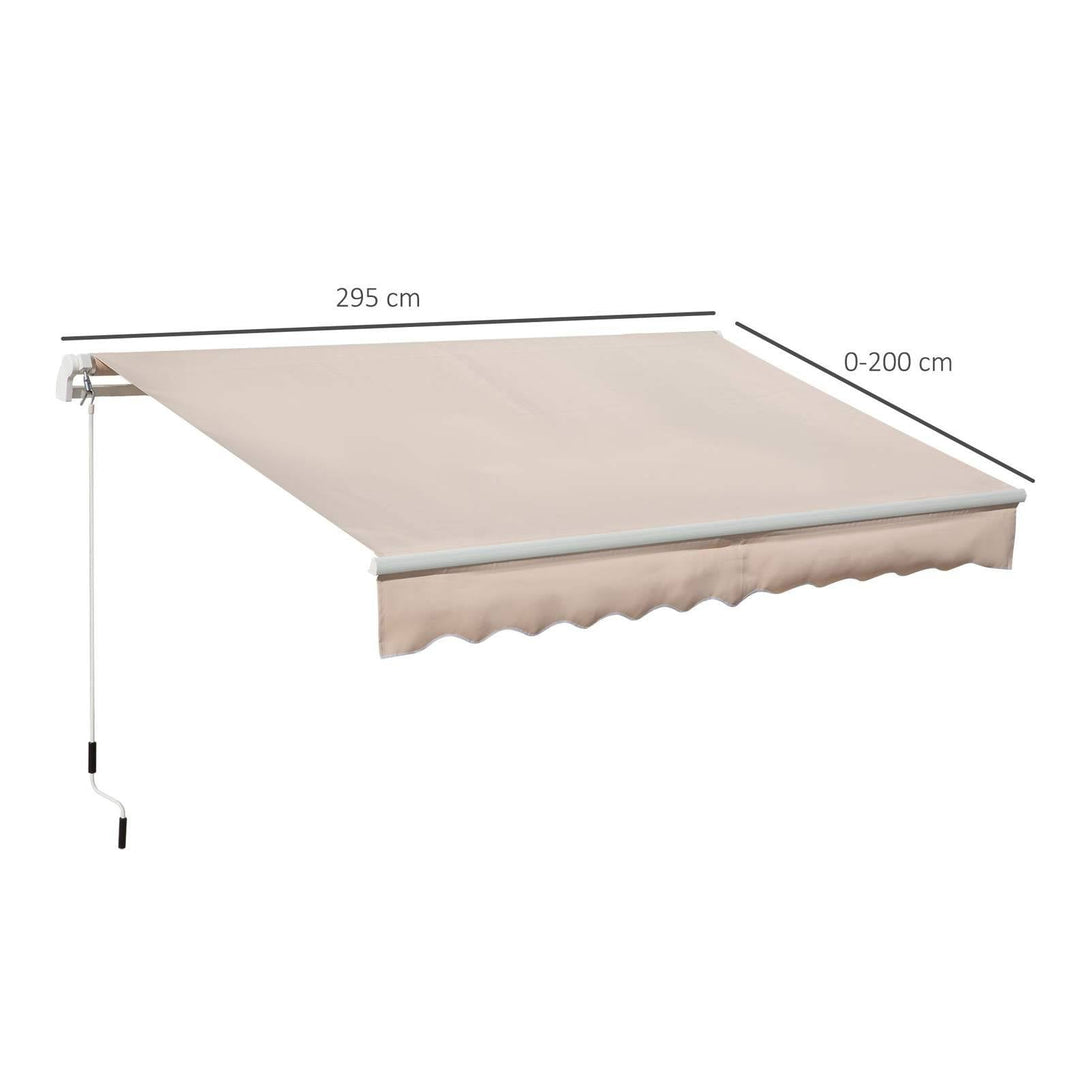 Awning Canopy Manual Retractable Porch Sun Shade Shelter 3 x 2m Beige
