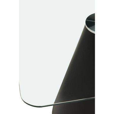 Featuring a clean and minimalist profile, this dining table has a clear glass top. The square tabletop forms a monochrome contrast with an elegant black finish conical base.