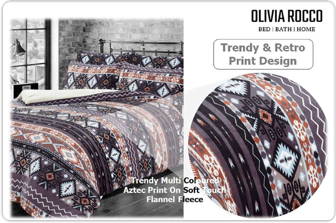 Aztec Print Teddy Fleece Duvet Set with Reversible Sherpa Fur Luxurious Winter Comfort in Single Double King Sizes by OLIVIA ROCCO