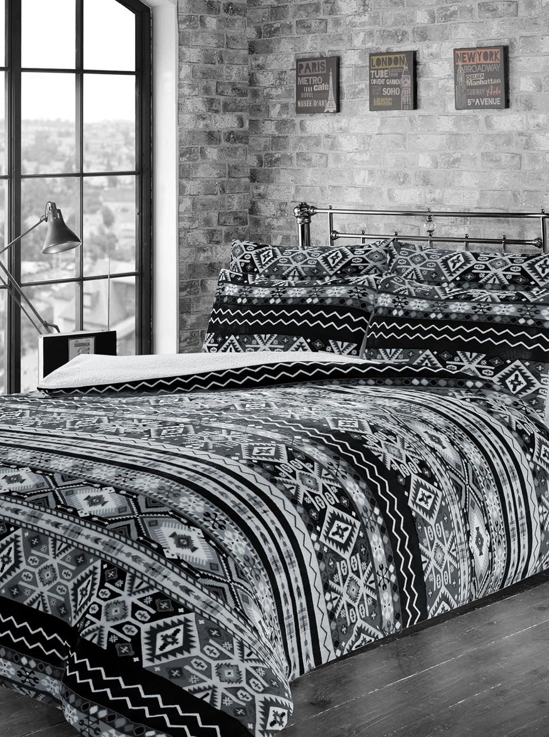 Aztec Printed Teddy Duvet Sets With Reversible Sherpa Fleece Fur