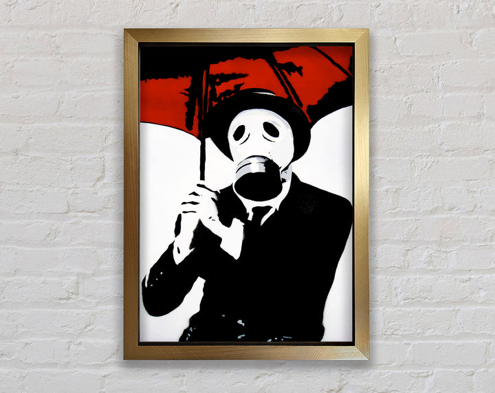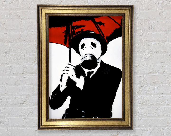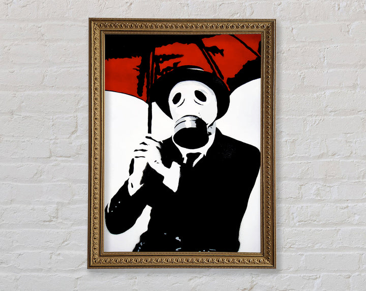 Gerahmter Druck „Bankers Gas Mask Close-Up“, erhältlich in mehreren Rahmenfarben. Fertig zum Aufhängen aus der Schachtel und handgefertigt im Vereinigten Königreich.