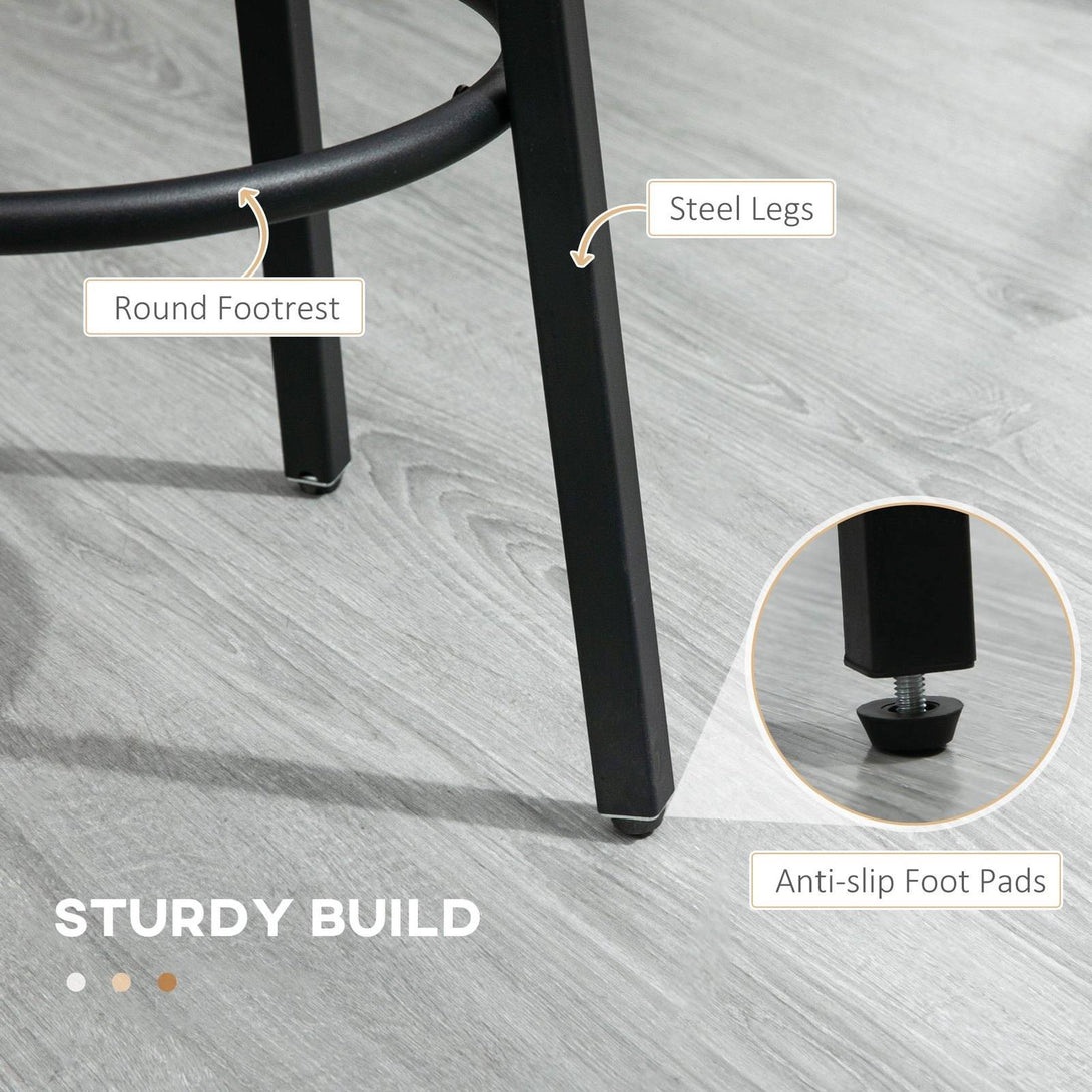 These two industrial-style kitchen bar stools from HOMCOM are great for creating impact wherever they stand. Framed from powder coated steel for a strong structure, fitted with a round bar to rest your legs comfortably. The seat surface is made from quality particle board for durability, finished in a wood-effect look. The 65 cm seat height makes it idea to pair with 89-99 cm kitchen counter tops. Set the HOMCOM bar stools at your home today!
