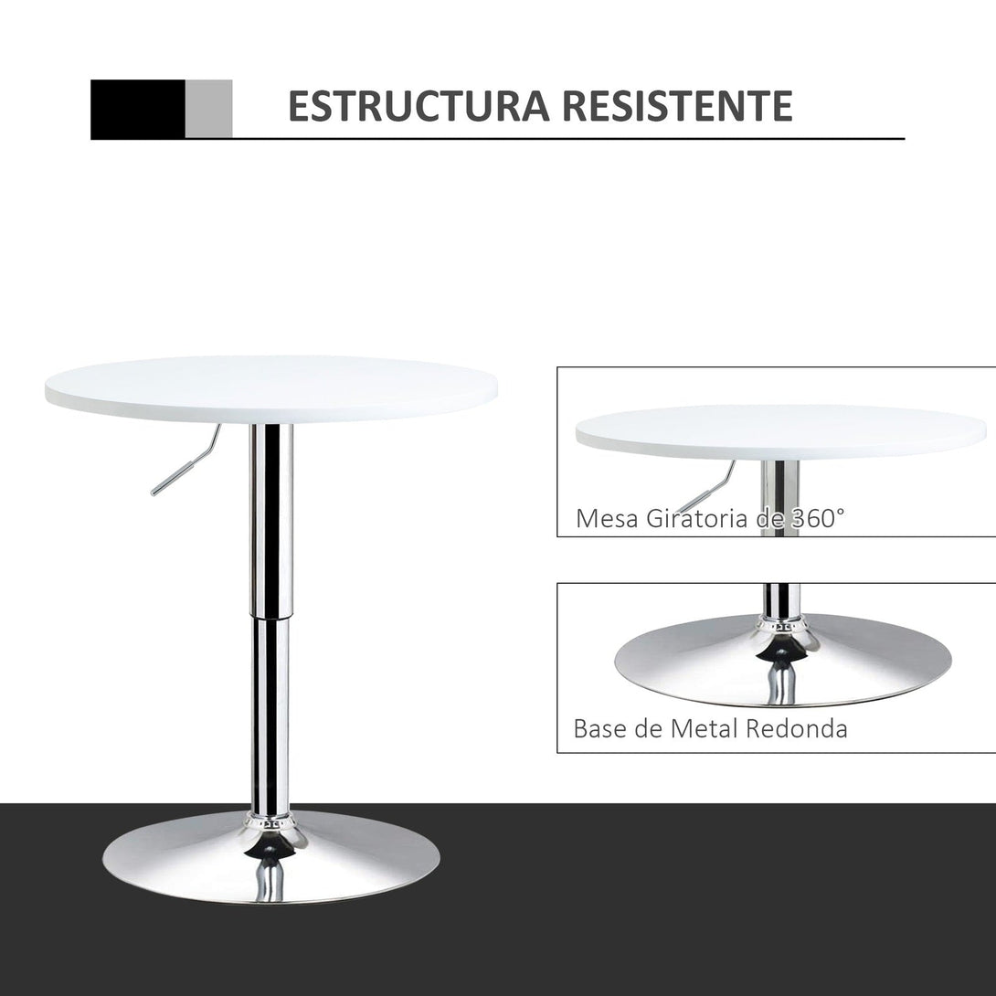 Bar Table ?60cm Adjustable Height Round Bistro Table w/ Swivel Top Metal Frame Counter Surface Stylish Kitchen Conservatory White
