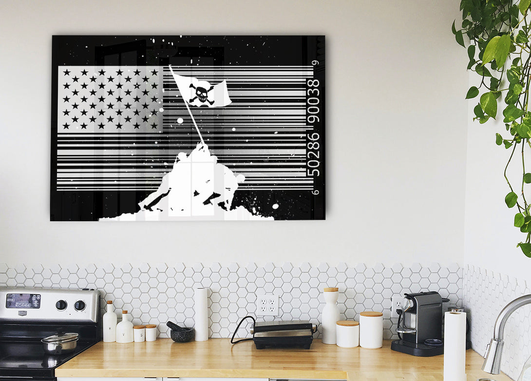 Acryldruck „Barcode Pirates“, UV-gedruckt auf 5 mm dickes Acrylglas. Wird mit allem geliefert, was Sie zum Aufhängen an die Wand brauchen.