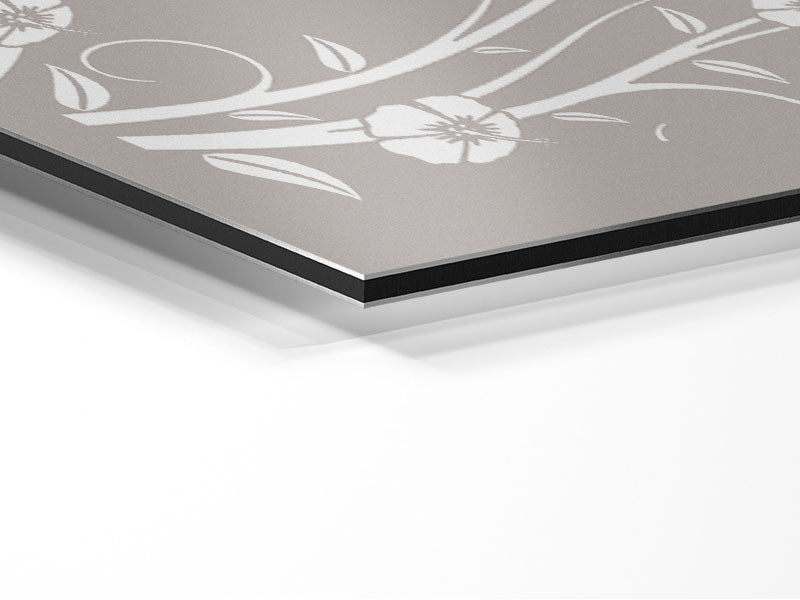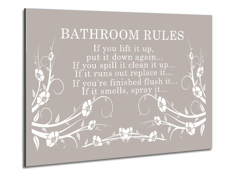 Badezimmer-Zitat Badezimmerregeln 2 Beige Gedruckt auf gebürstetem Aluminium-Dibond. Eine moderne Art, Kunst zu präsentieren und leicht zu pflegen.