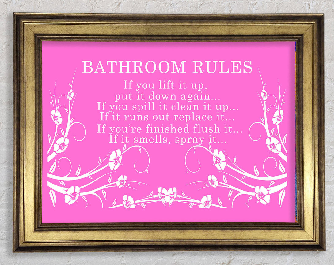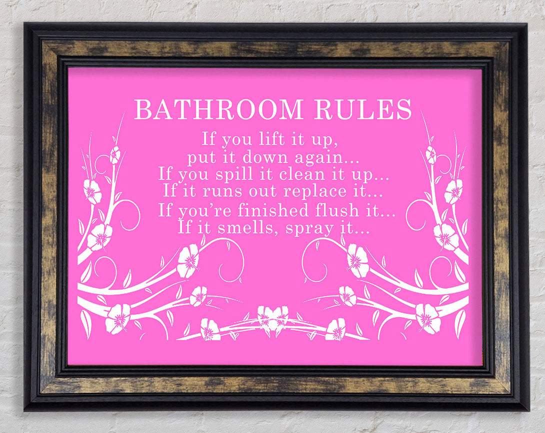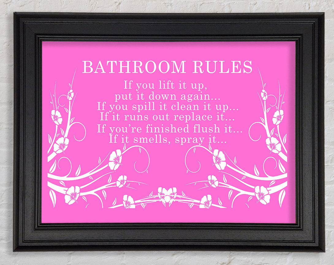 Bathroom Quote Bathroom Rules 2 Vivid Pink Framed Print