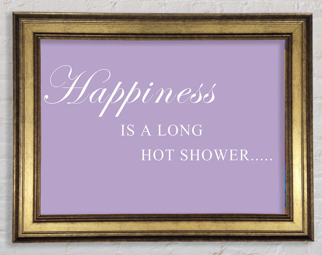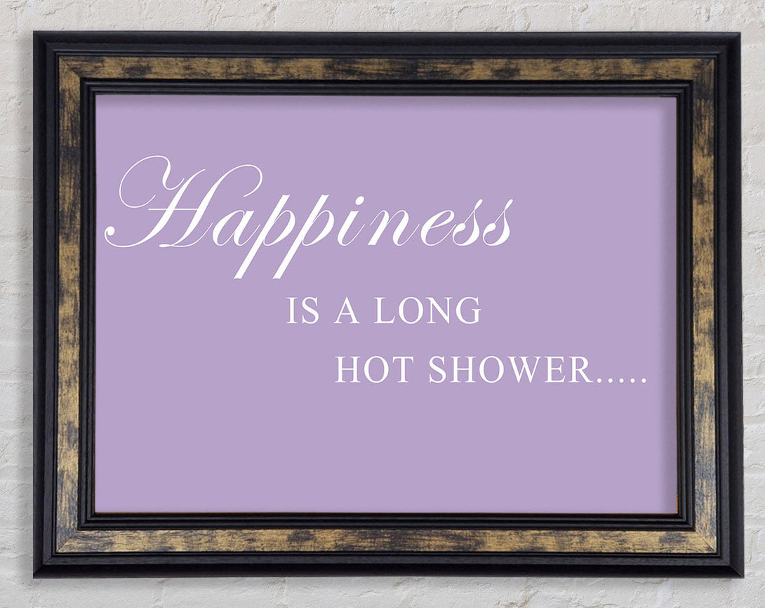 Bathroom Quote Happiness Is A Long Hot Shower Lilac Framed Print