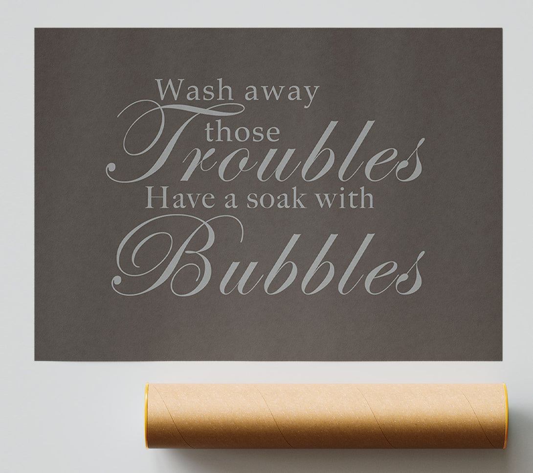 Bathroom Quote Wash Away Those Troubles Chocolate Giclee Print