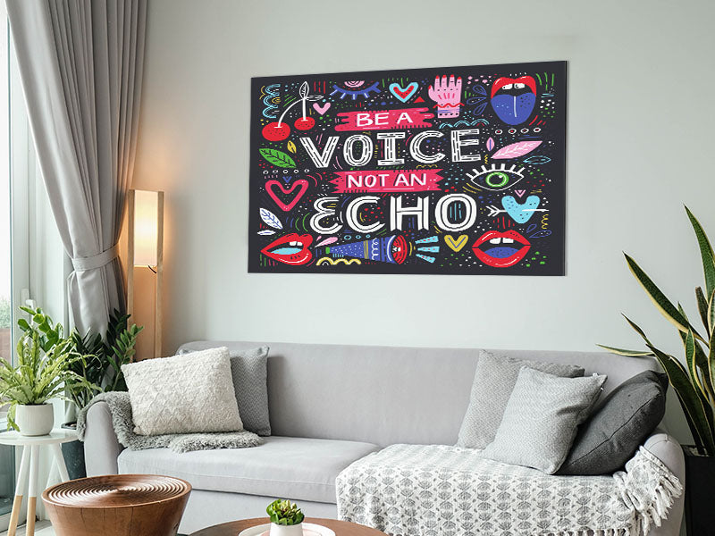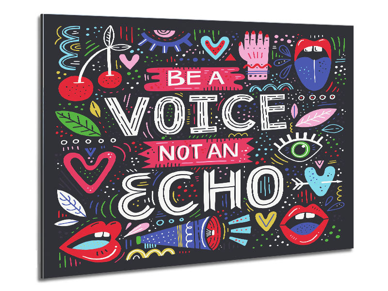 Sei eine Stimme, kein Echo. Gedruckt auf gebürstetem Aluminium-Dibond. Eine moderne Art, Kunst zu präsentieren und leicht zu pflegen.