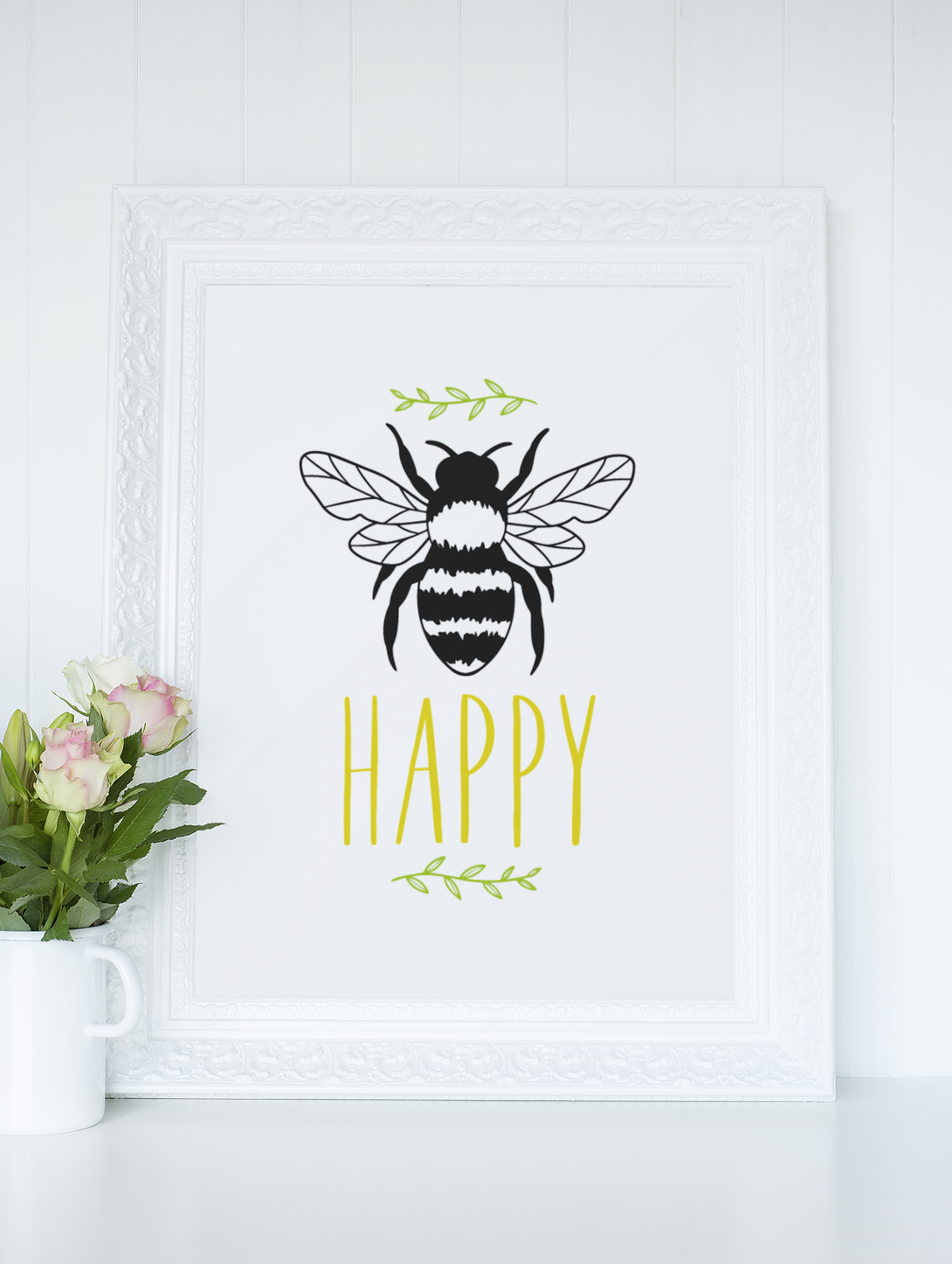 Be Happy Bumble Bee Simple Bedroom Dressing Room Home Wall Decor Print
