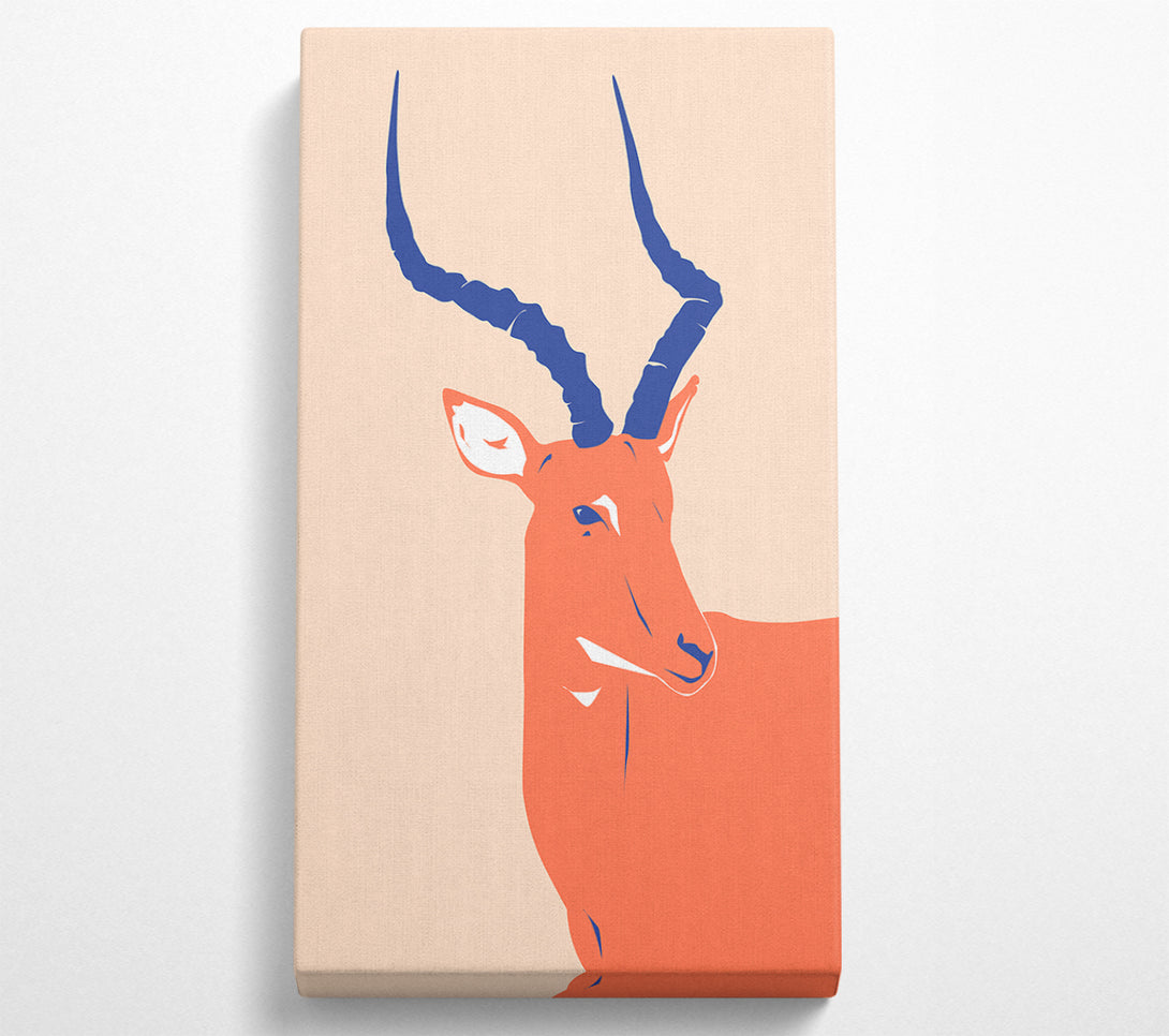 Wunderschöne breite Impala-Leinwand, gedruckt auf beschichteter Polyester-Leinwand. Auf einem 44 mm breiten Kastenrahmen montiert, fertig zum Aufhängen.