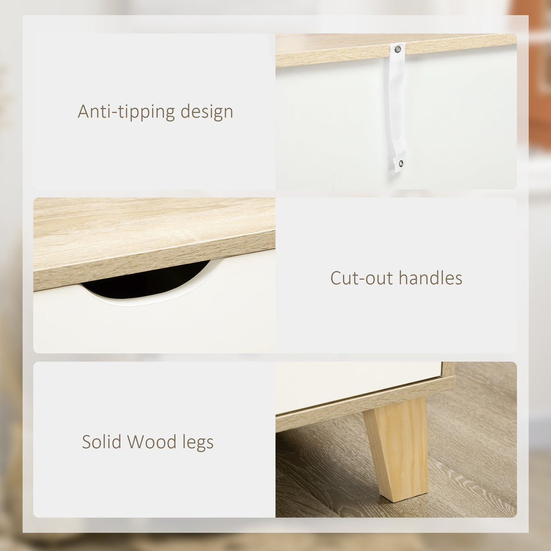 A storage solution to update your bedroom comes in the form of this HOMCOM 6 drawer chest of drawers. It features six drawers for plenty of storage - a must for keeping clothes and more organised and together. All the bedroom drawers are fitted with handles to open and close easily. Made from particle board for durability, it's finished with wooden legs for full support.
