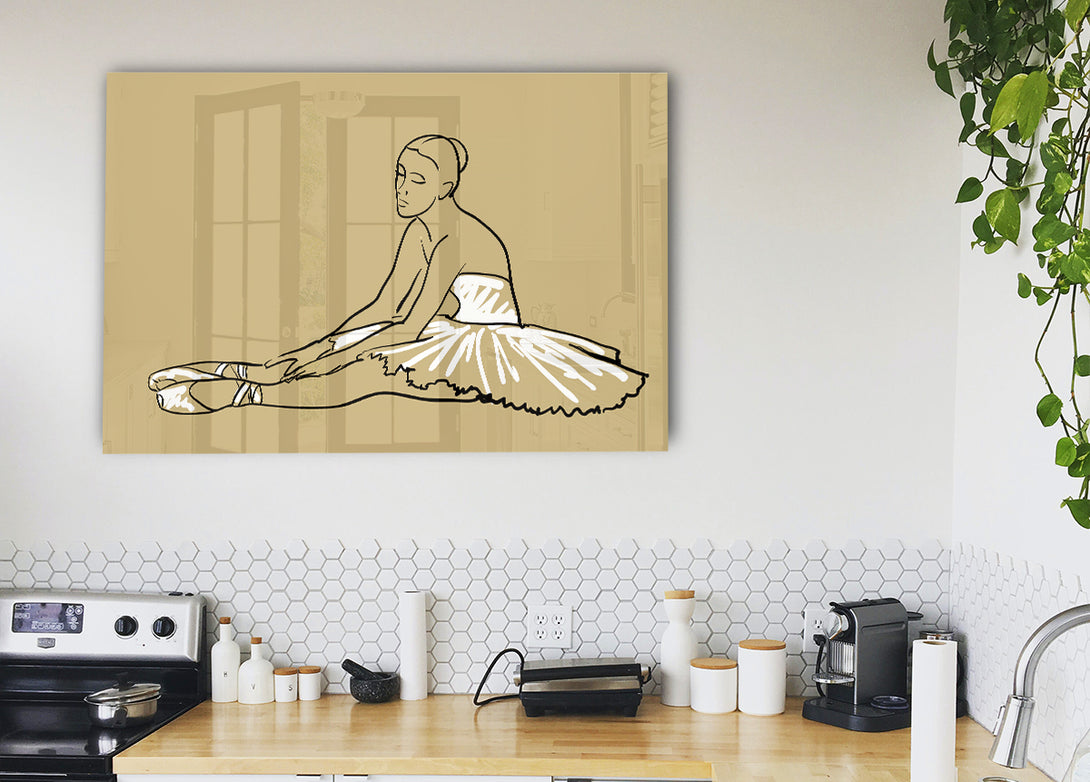 Beigeweißer Acryldruck „Ballerina 4“, UV-gedruckt auf 5 mm dickes Acrylglas. Wird mit allem geliefert, was Sie zum Aufhängen an Ihre Wand benötigen.