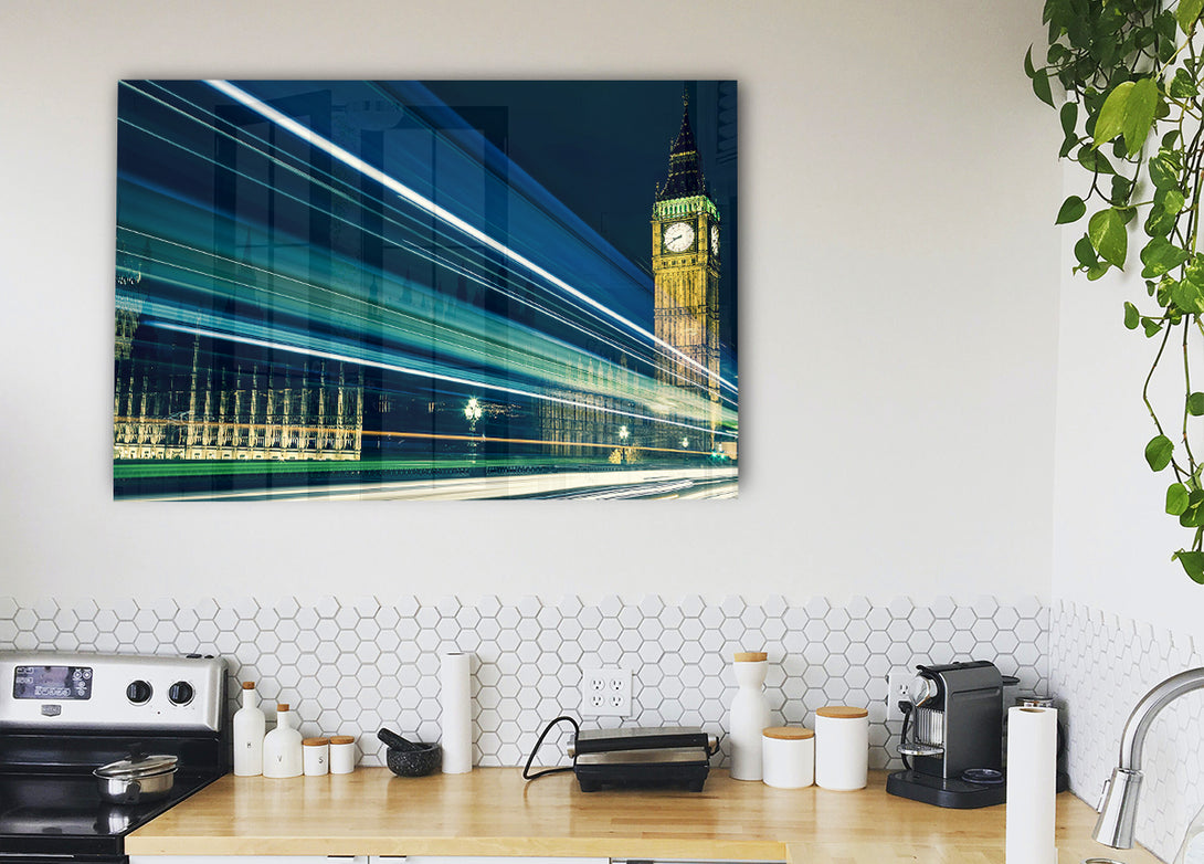 Acryldruck „Big Ben Speed Of Light 6“, UV-gedruckt auf 5 mm dickes Acrylglas. Wird mit allem geliefert, was Sie zum Aufhängen an die Wand brauchen.