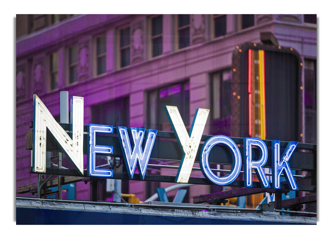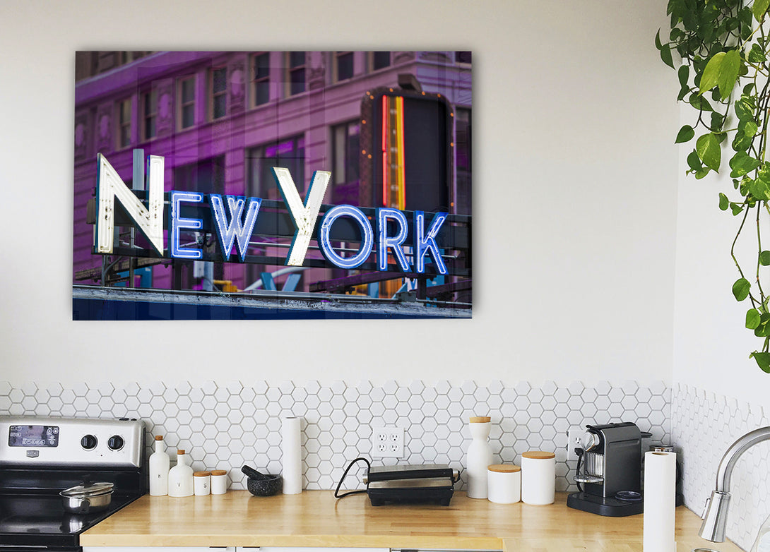 Acryldruck „Big City Lights“, UV-gedruckt auf 5 mm dickes Acrylglas. Wird mit allem geliefert, was Sie zum Aufhängen an die Wand brauchen.