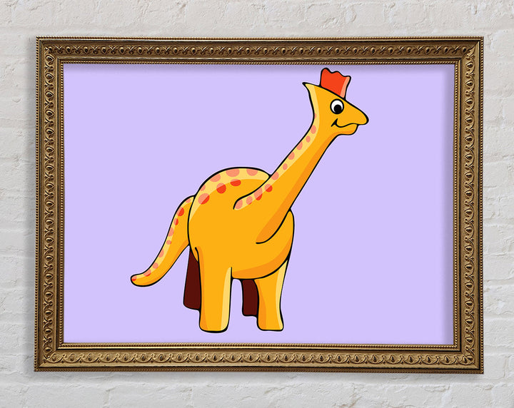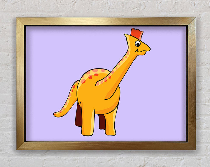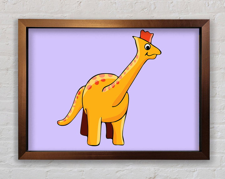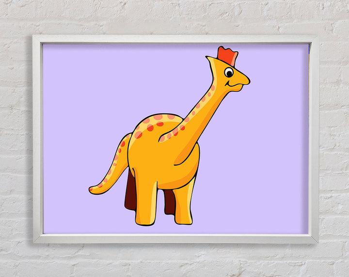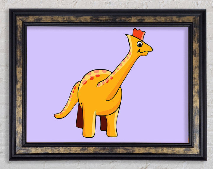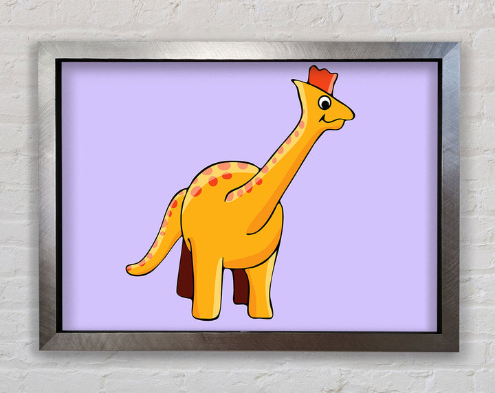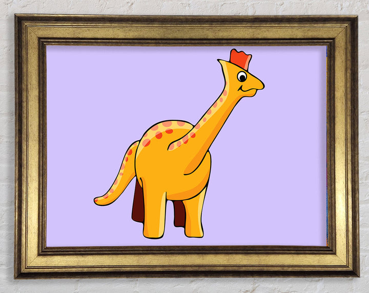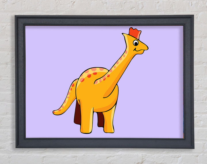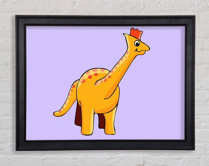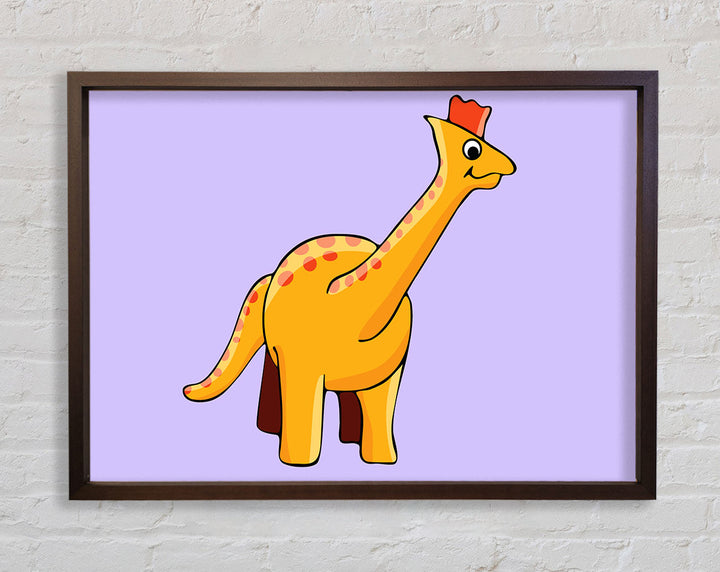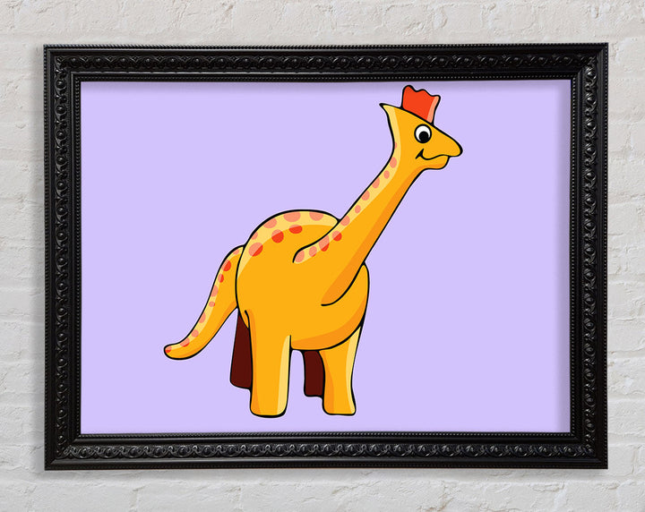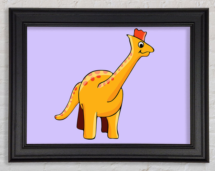 Großer pflanzenfressender Dinosaurier mit langem Hals, lila gerahmter Druck, in mehreren Rahmenfarben erhältlich. Fertig zum Aufhängen aus der Schachtel und handgefertigt im Vereinigten Königreich.