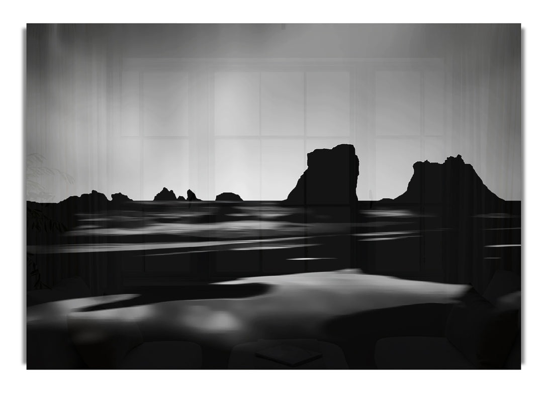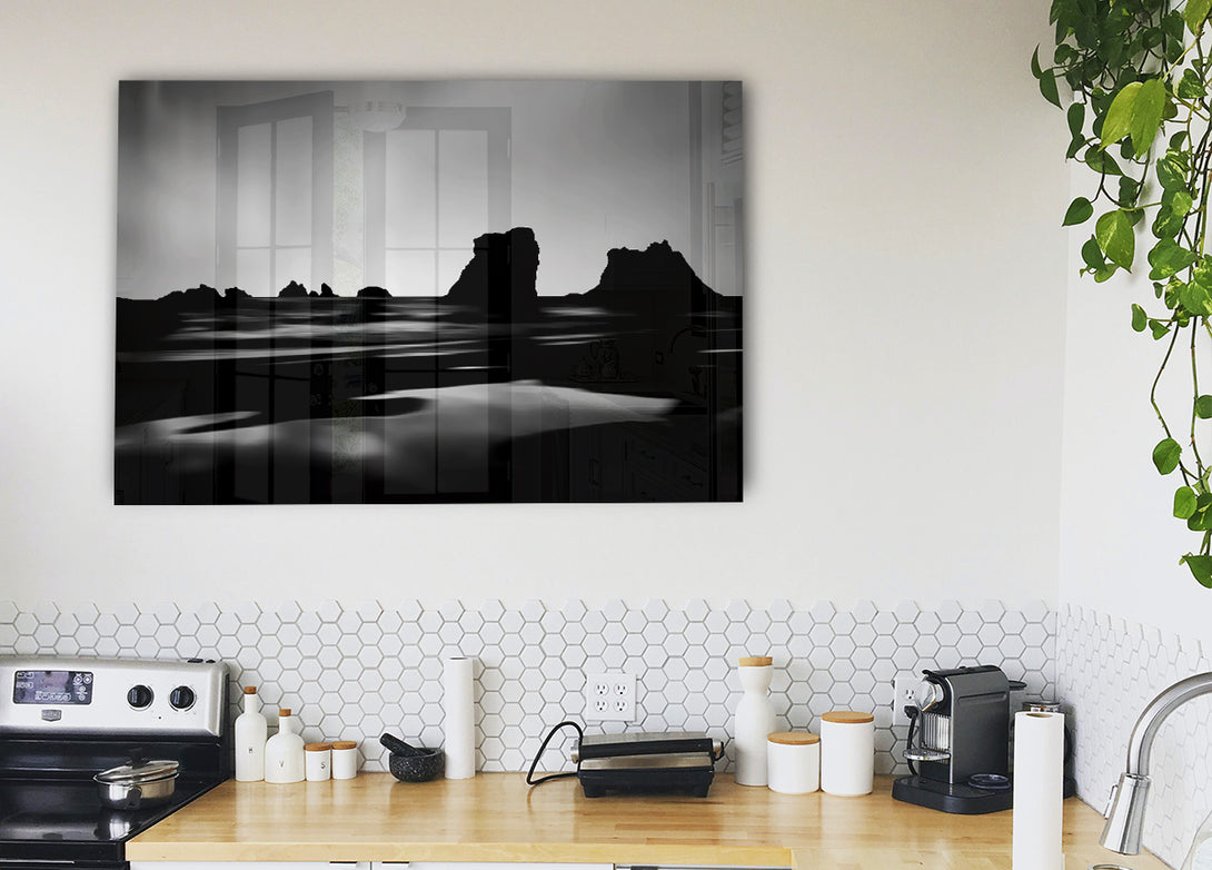 Schwarz-weißer Ozean-Acryldruck, UV-gedruckt auf 5 mm dickes Acrylglas. Wird mit allem geliefert, was Sie zum Aufhängen an die Wand brauchen.