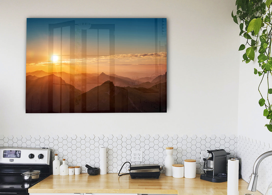 Blazing Sun Glory-Acryldruck, UV-gedruckt auf 5 mm dickes Acrylglas. Wird mit allem geliefert, was Sie zum Aufhängen an Ihre Wand benötigen.