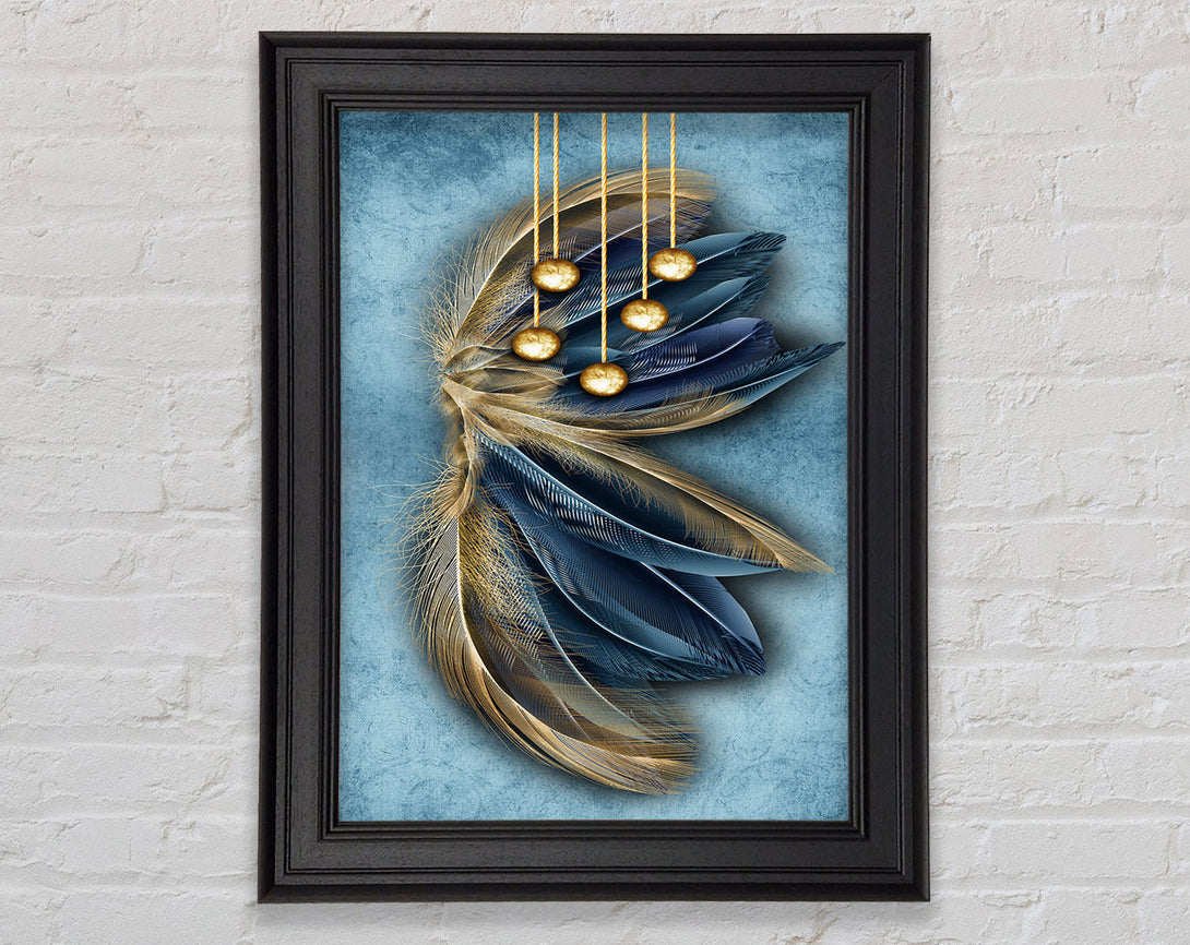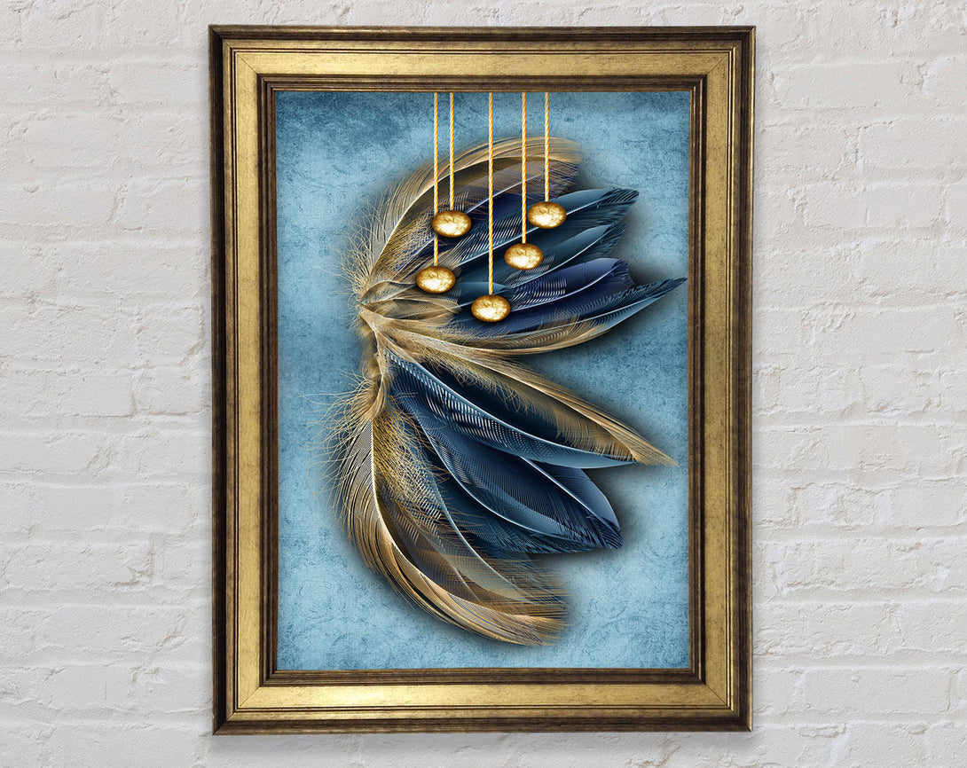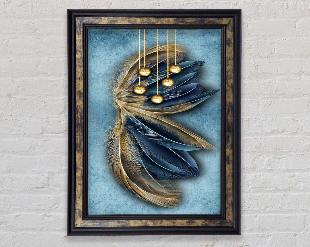 Blue And Gold Abstract Feathers Framed Print