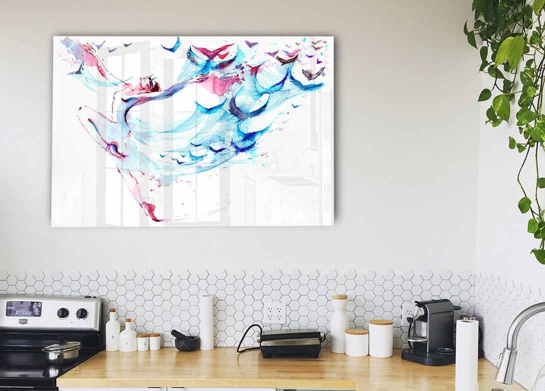 Acryldruck „Blau-rosa Ballerina 3“, UV-Druck auf 5 mm dickes Acrylglas. Wird mit allem geliefert, was Sie zum Aufhängen an die Wand brauchen.