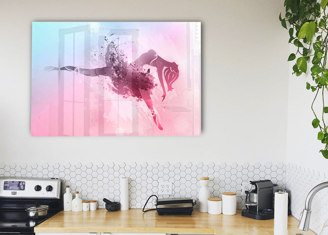 Acryldruck „Blau-rosa Ballerina 6“, UV-Druck auf 5 mm dickes Acrylglas. Wird mit allem geliefert, was Sie zum Aufhängen an die Wand brauchen.