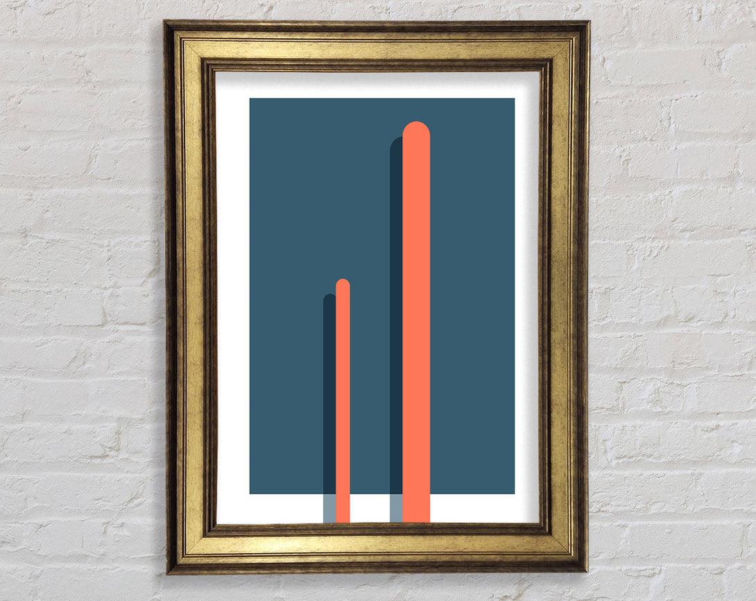 Blue Rectangle With Orange Lines Framed Print