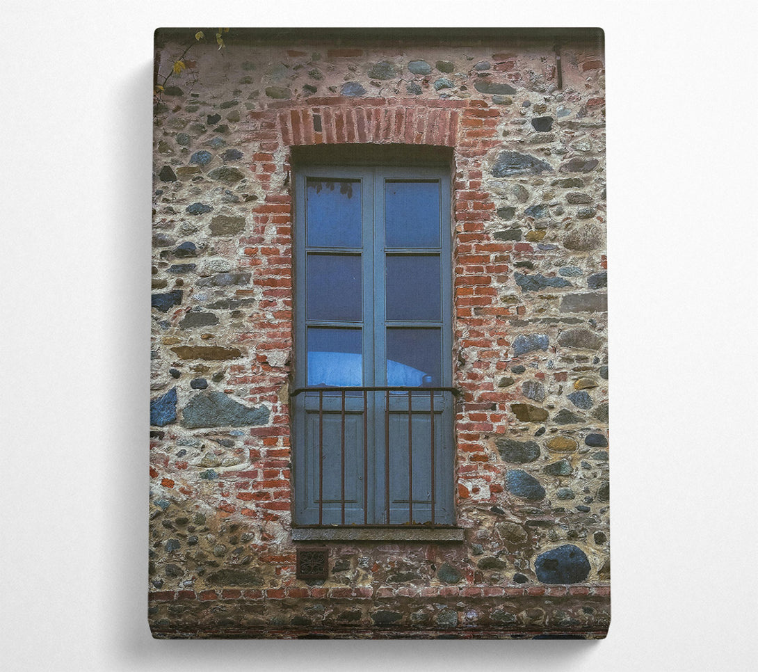 Blue Window In Stone Wall Canvas Art