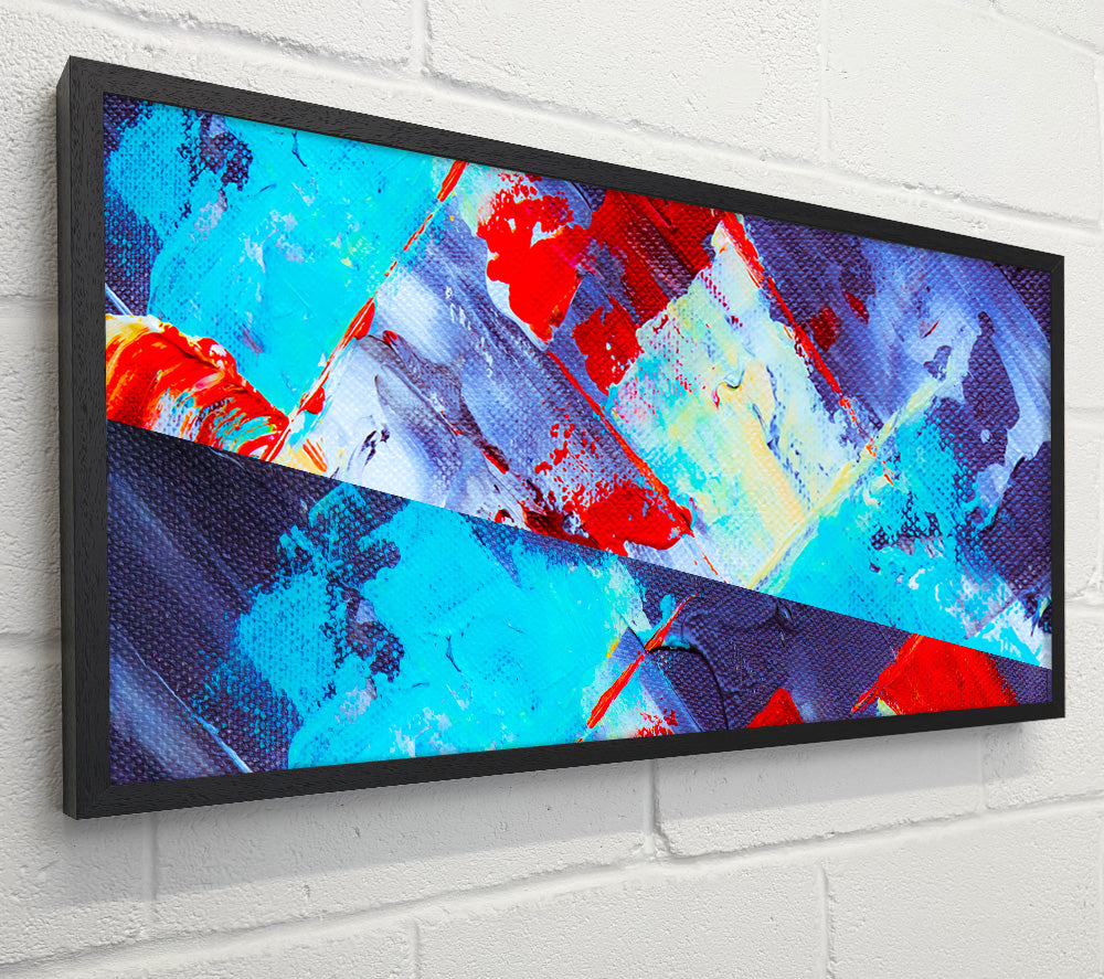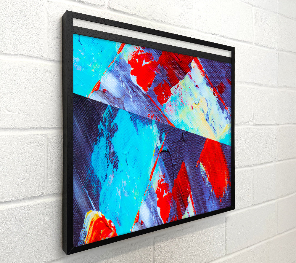 Kräftige Striche in Blau und Rot, quadratische Leinwand, gedruckt auf beschichteter Polyester-Leinwand. Auf einem 44 mm großen Kastenrahmen montiert, fertig zum Aufhängen.