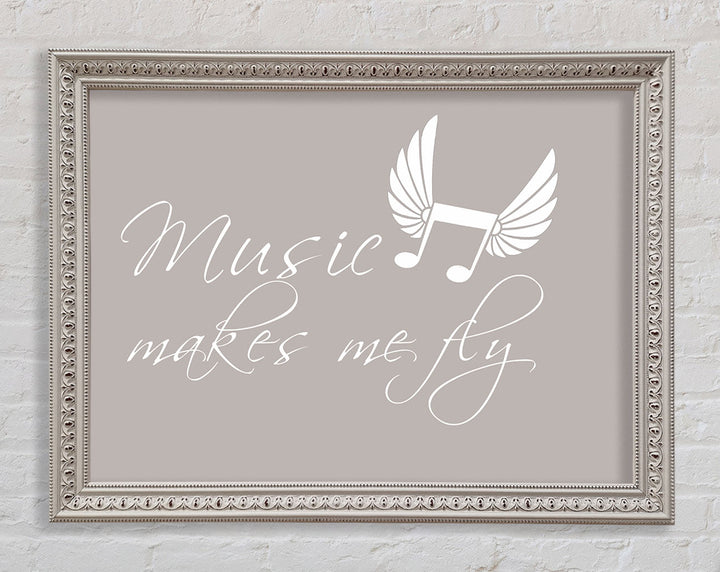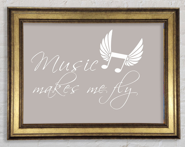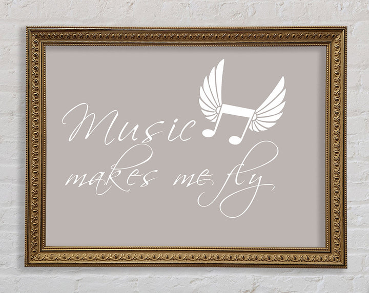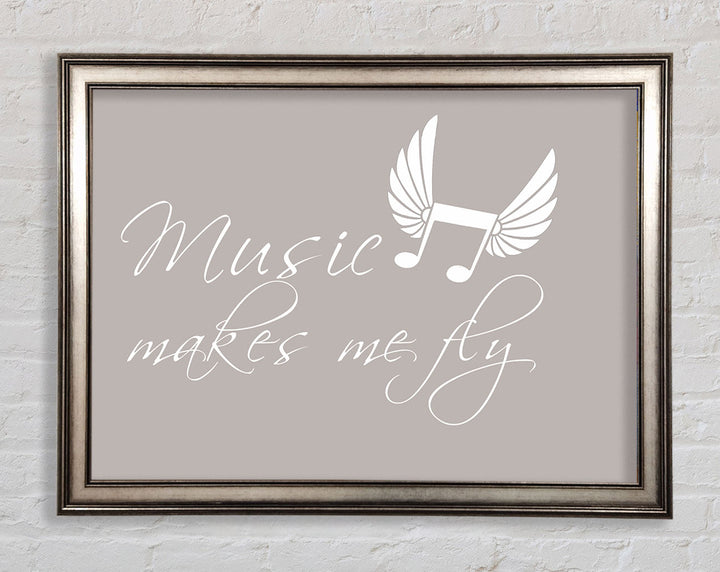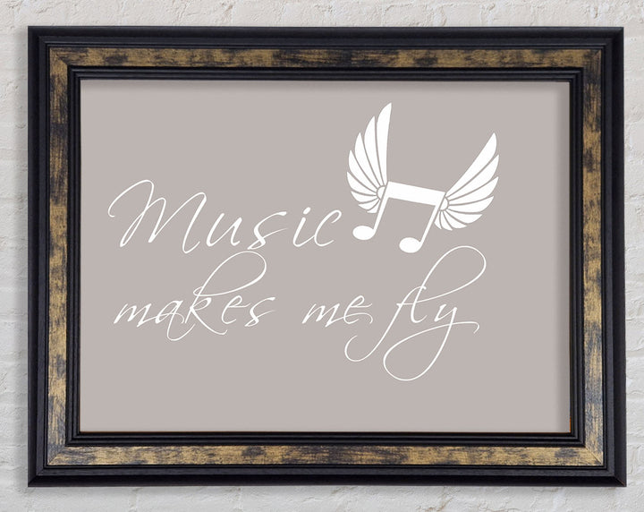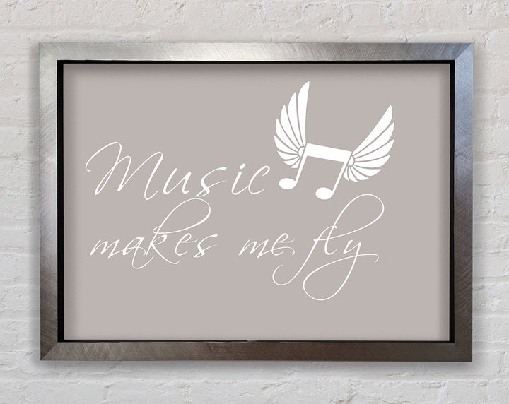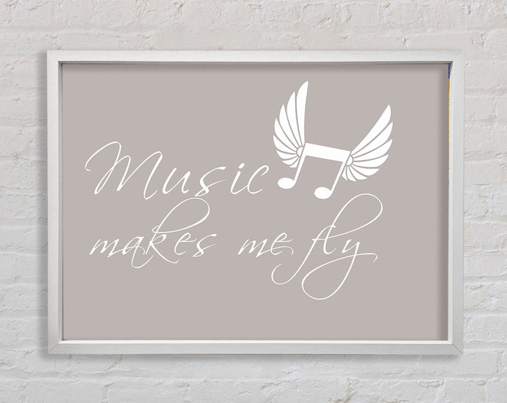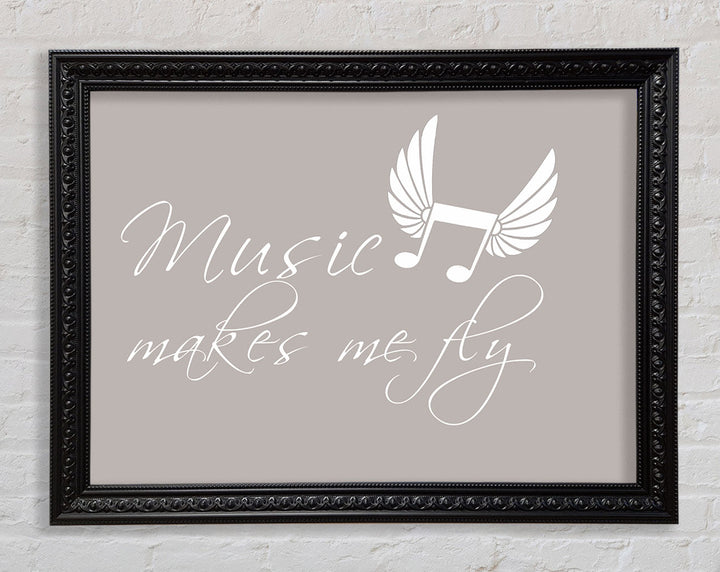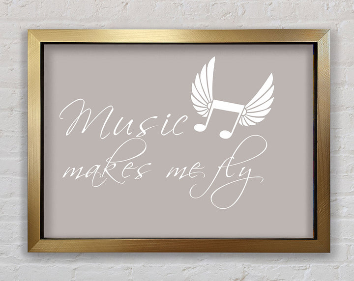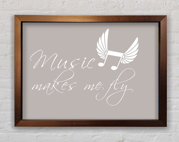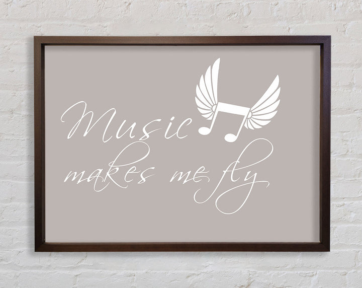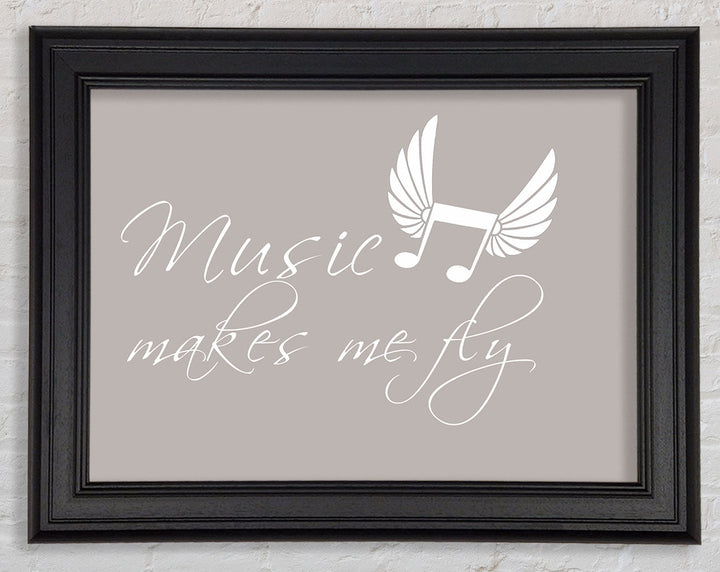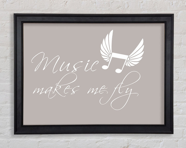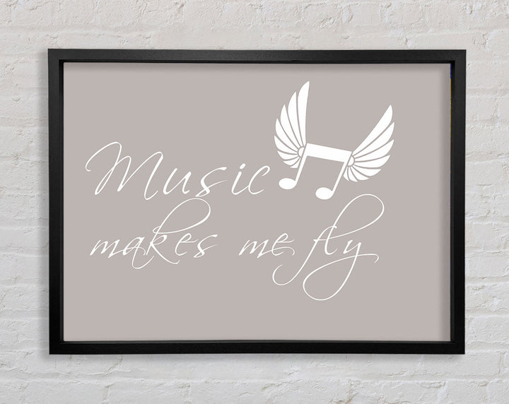 Zitat „Music Makes Me Fly“ für Jungenzimmer. Beige gerahmter Druck, in mehreren Rahmenfarben erhältlich. Fertig zum Aufhängen aus der Schachtel und handgefertigt im Vereinigten Königreich.