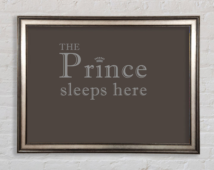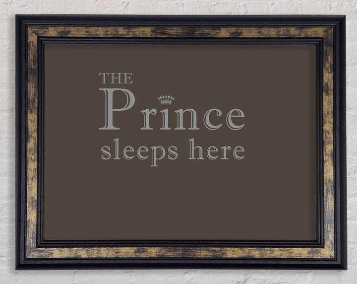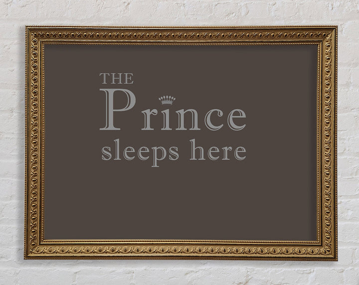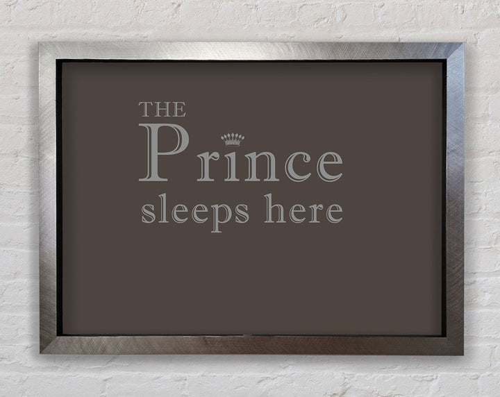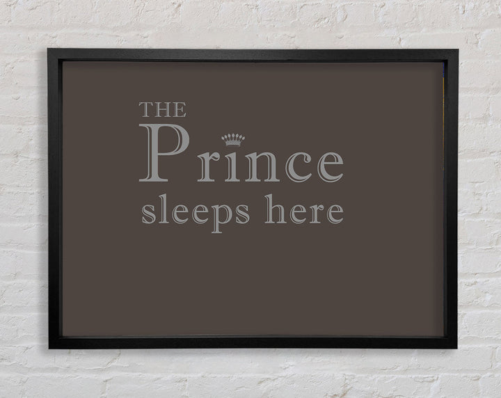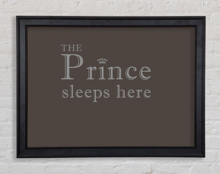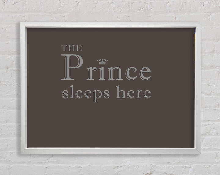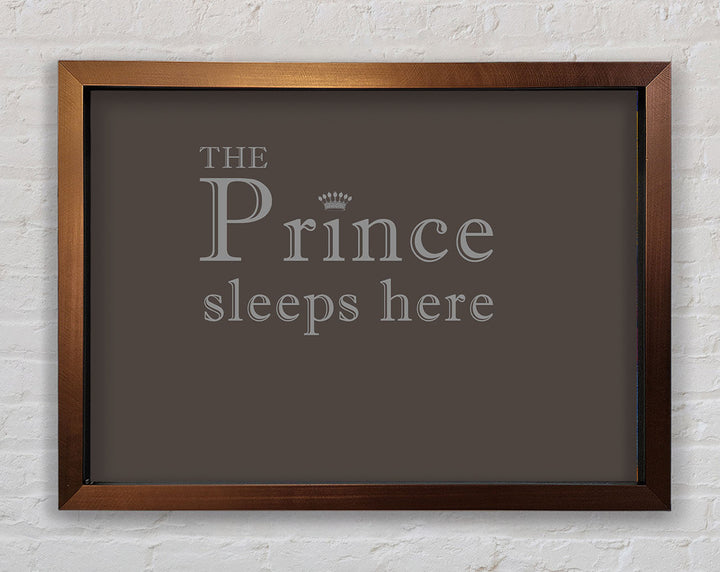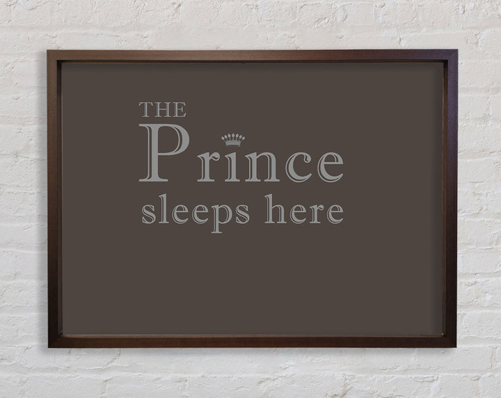 Zitat „Der Prinz schläft hier“ für Jungenzimmer. Schokoladengerahmter Druck, in mehreren Rahmenfarben erhältlich. Fertig zum Aufhängen aus der Schachtel und handgefertigt im Vereinigten Königreich.