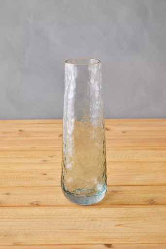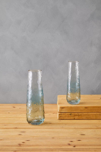 The Brock small vase features expert craftsmanship with a minimalist profile. The blue colour fades into transparency in a smooth gradient that adds style. The slender profile and textured surface enhance the visual appeal.