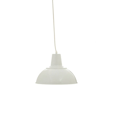The Bryen pendant light is made from tough metal, with dual ridge detailing on the shade that gives it a fluid, rippled look. Its crisp white finish complements the shade's white interior. The conical pendant holder contributes to its flowing lines, while a matching round ceiling mount completes the look.