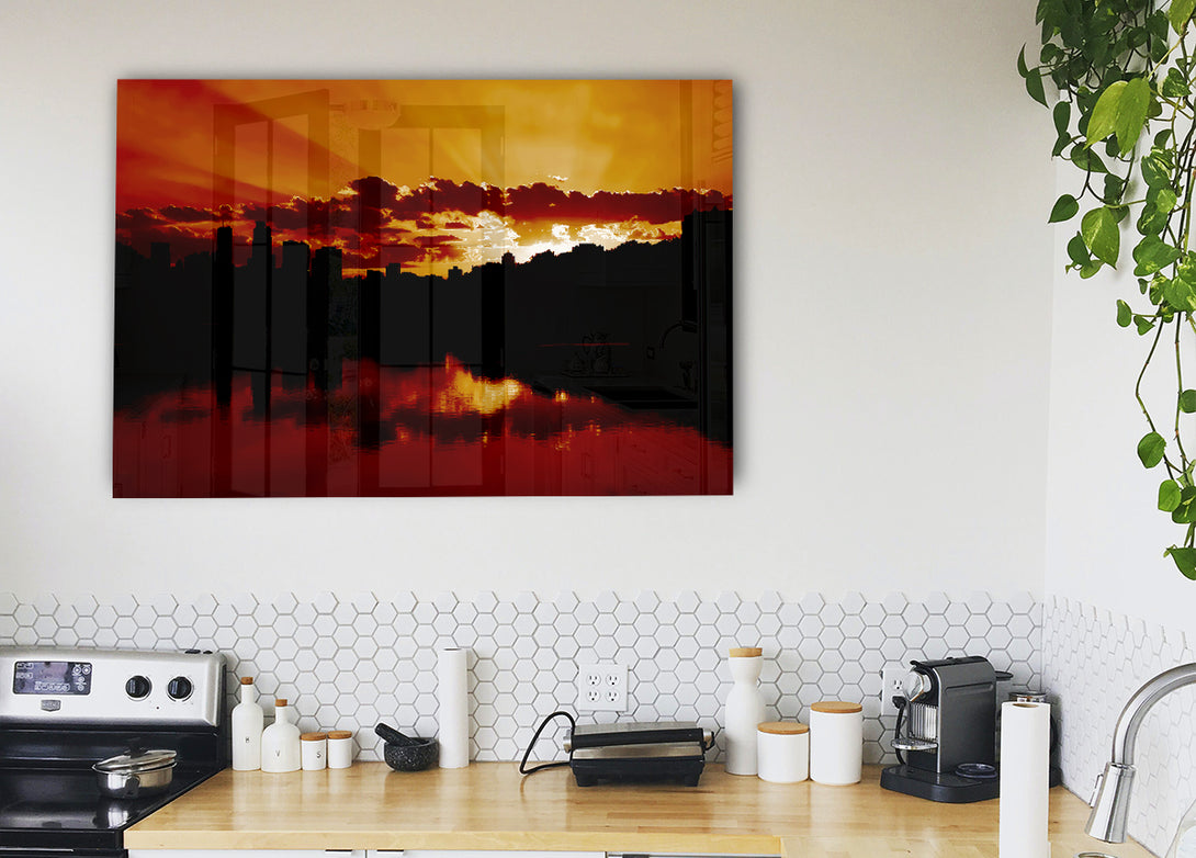 Acryldruck „Caramell-Sonnenstrahlen“, UV-Druck auf 5 mm dickes Acrylglas. Wird mit allem geliefert, was Sie zum Aufhängen an die Wand benötigen.