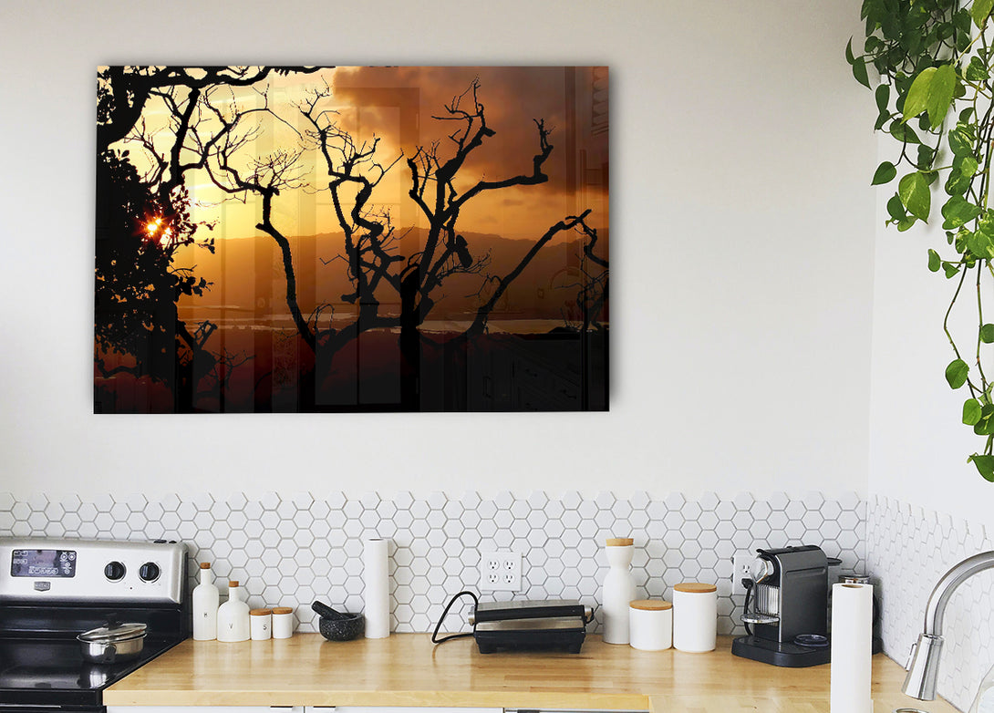 Acryldruck „Caramel Tree Morning“, UV-gedruckt auf 5 mm dickes Acrylglas. Wird mit allem geliefert, was Sie zum Aufhängen an die Wand brauchen.