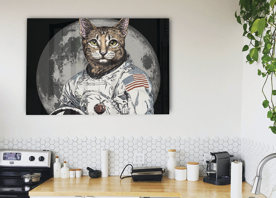 Acryldruck „Cat Astronaut“, UV-gedruckt auf 5 mm dickes Acrylglas. Wird mit allem geliefert, was Sie zum Aufhängen an die Wand brauchen.