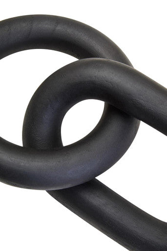 The two-link black chain features an interplay of two contrasting shapes, offering visual interest to the space. Crafted from natural wood by skilled artisans, this minimalist sculpture's interlooping form and organic material make it ideal for coffee table styling, infusing the space with artisanal charm. *Please note that naturally occurring variations may occur in wood colour, texture and grain.