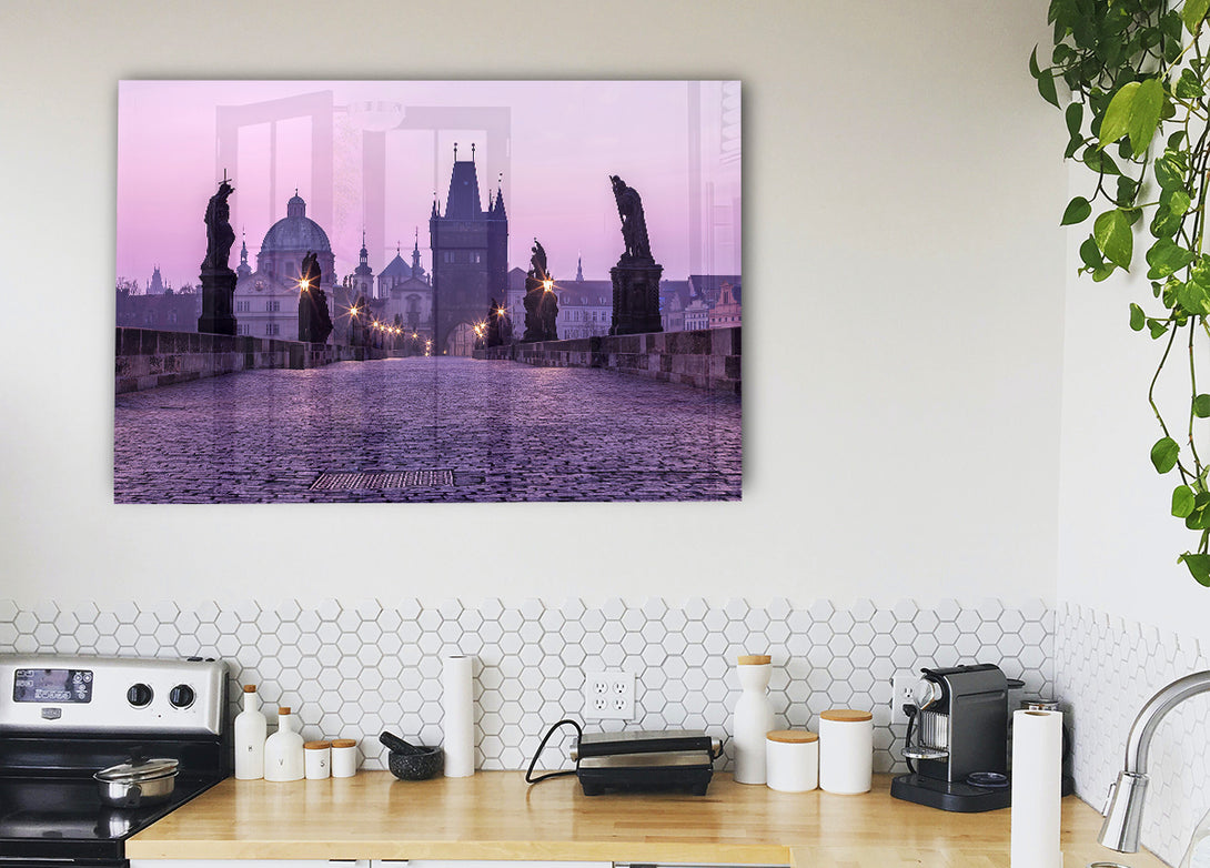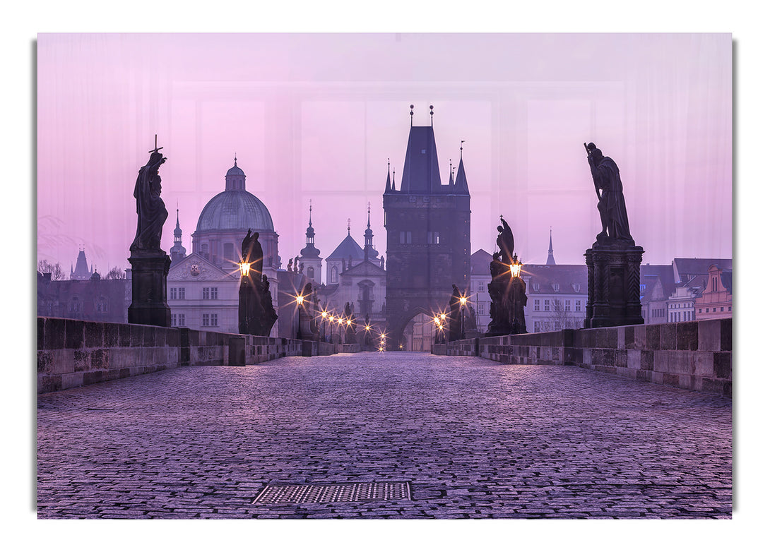 Acryldruck „Karlsbrücke in der Abenddämmerung“, UV-gedruckt auf 5 mm dickes Acrylglas. Wird mit allem geliefert, was Sie zum Aufhängen an die Wand brauchen.