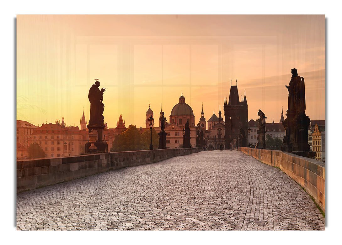 Acryldruck „Charles Bridge Morning Glow“, UV-gedruckt auf 5 mm dickes Acrylglas. Wird mit allem geliefert, was Sie zum Aufhängen an die Wand brauchen.