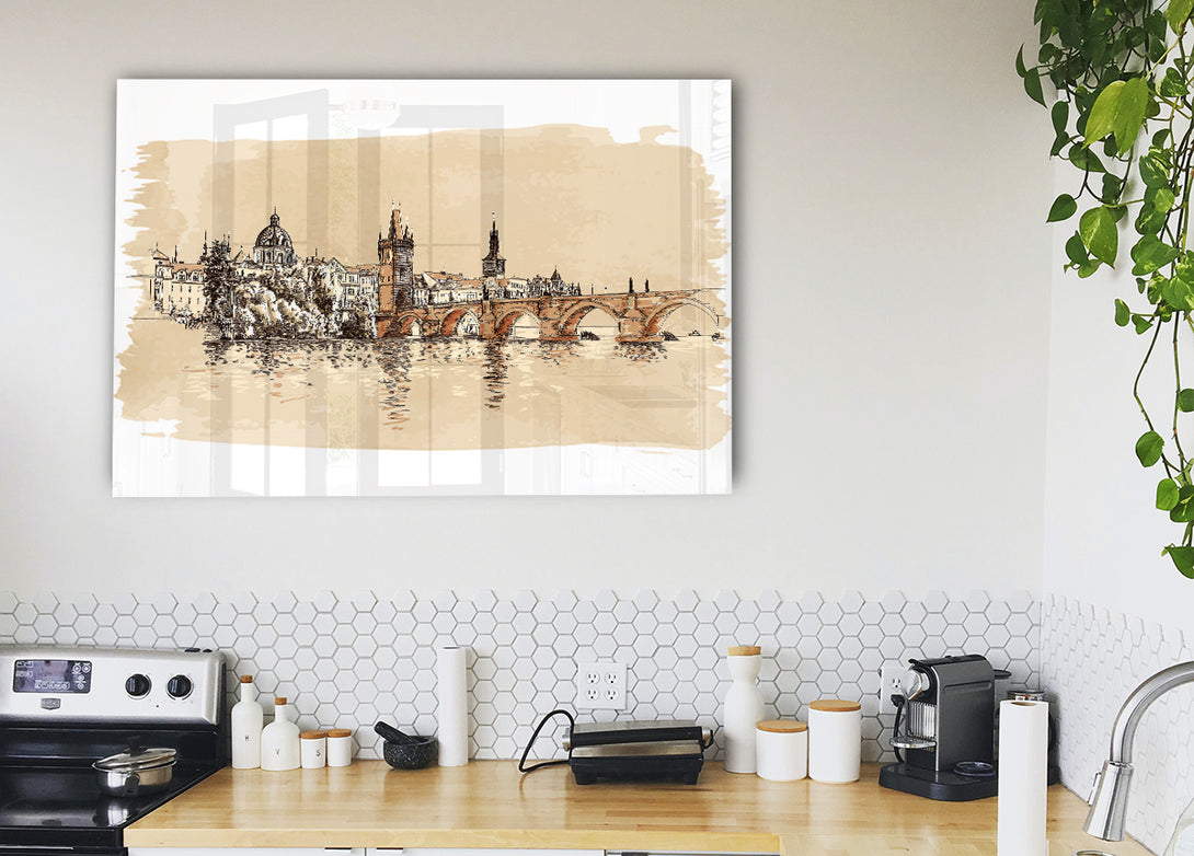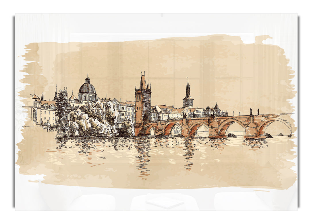 Aquarell-Acryldruck „Karlsbrücke“, UV-gedruckt auf 5 mm dickes Acrylglas. Wird mit allem geliefert, was Sie zum Aufhängen an die Wand brauchen.